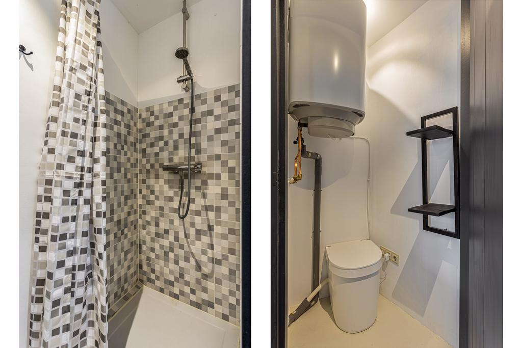 In addition to the detached garage at the back right of the garden, a dedicated guest house is located at the back left—ideal for guests, teenagers, or a home office. This space (approx. 20 m²) consists of a living/work area, a shower room, a toilet, a kitchenette, and its own covered terrace.