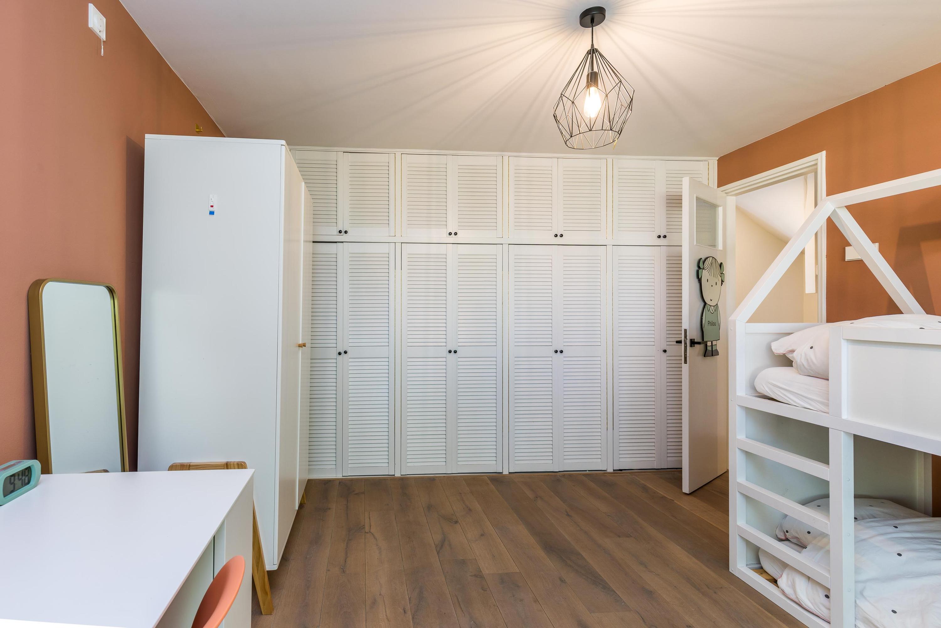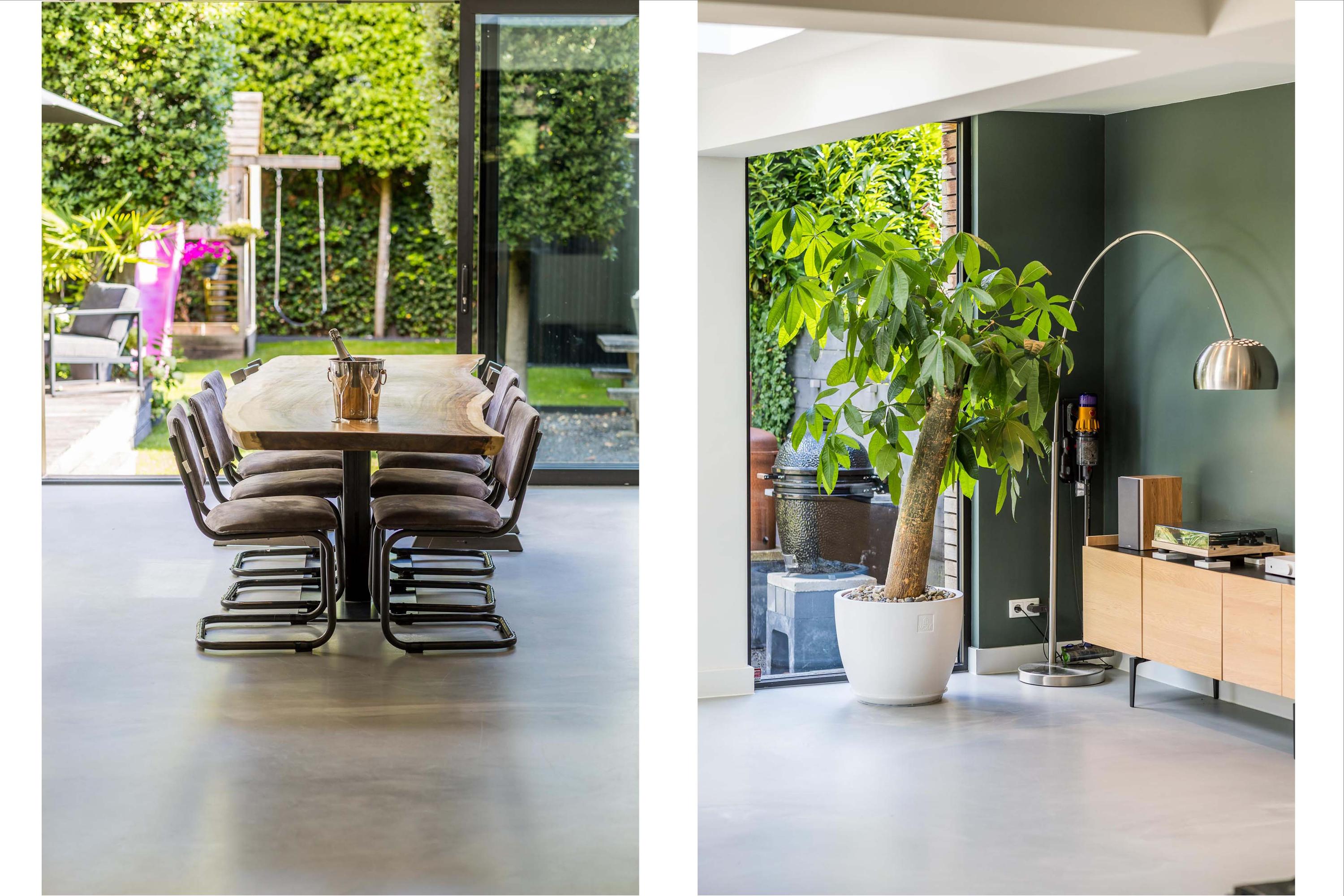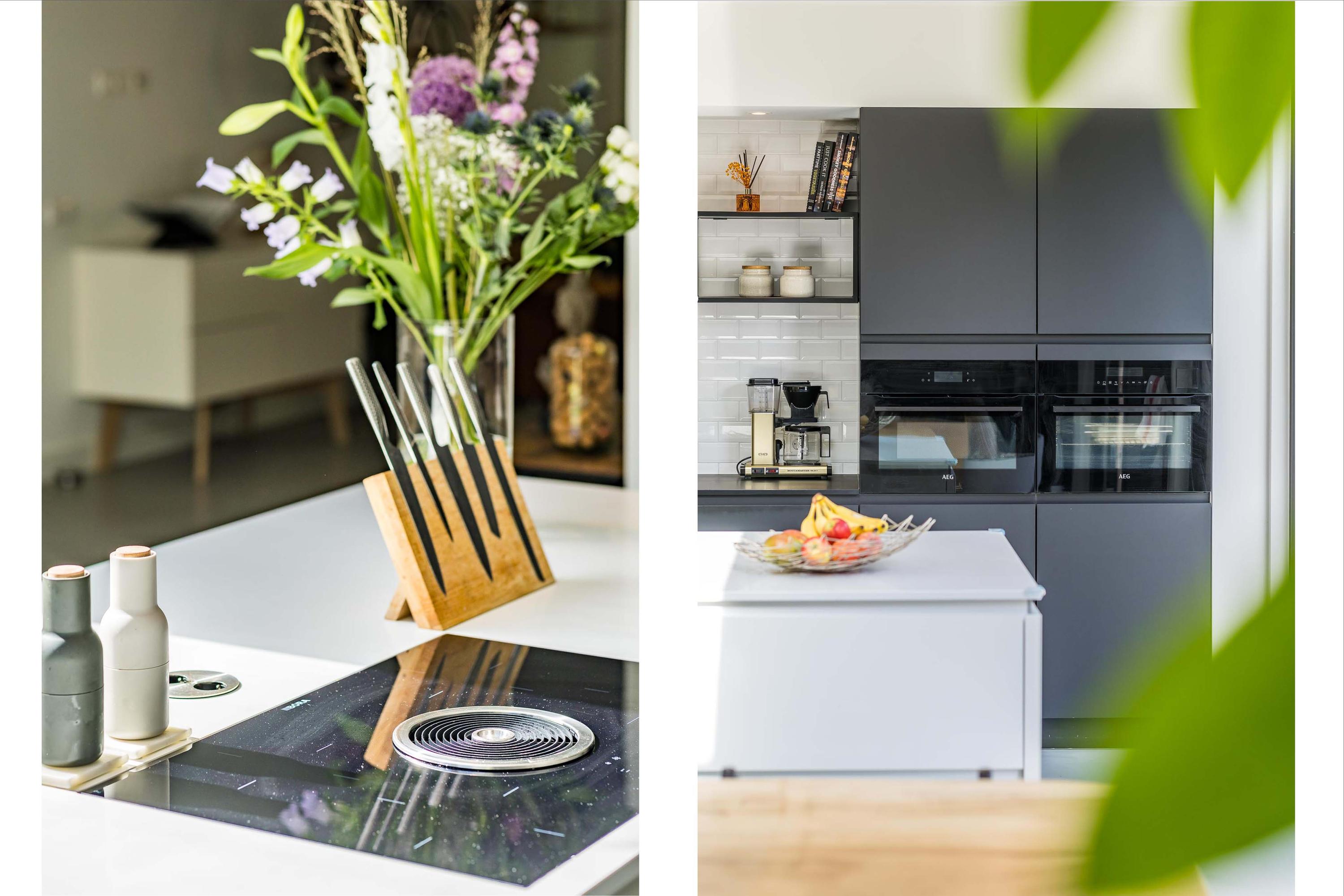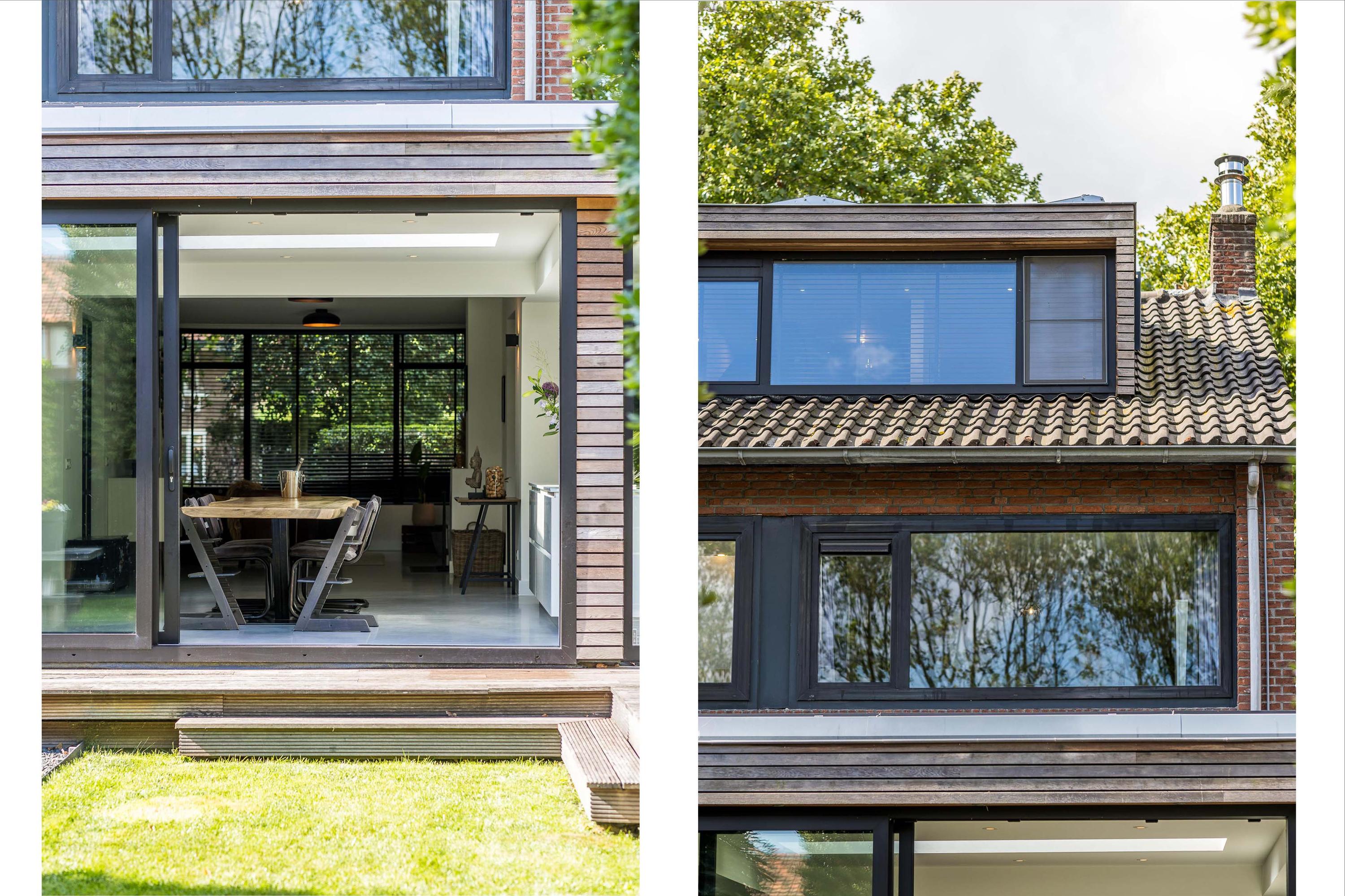 Light defines the interiors. A full-width glass façade with double sliding doors marries the large living space to a sunny, deep back garden, where privacy and child-friendly design coexist. The open kitchen is fitted with high-end appliances including a wine climate cabinet and connects easily to a practical utility room. Details such as double glazing, air conditioning, mechanical ventilation, fibre optic cable, alarm, and twelve solar panels installed in 2023 speak to modern comfort and energy consciousness.