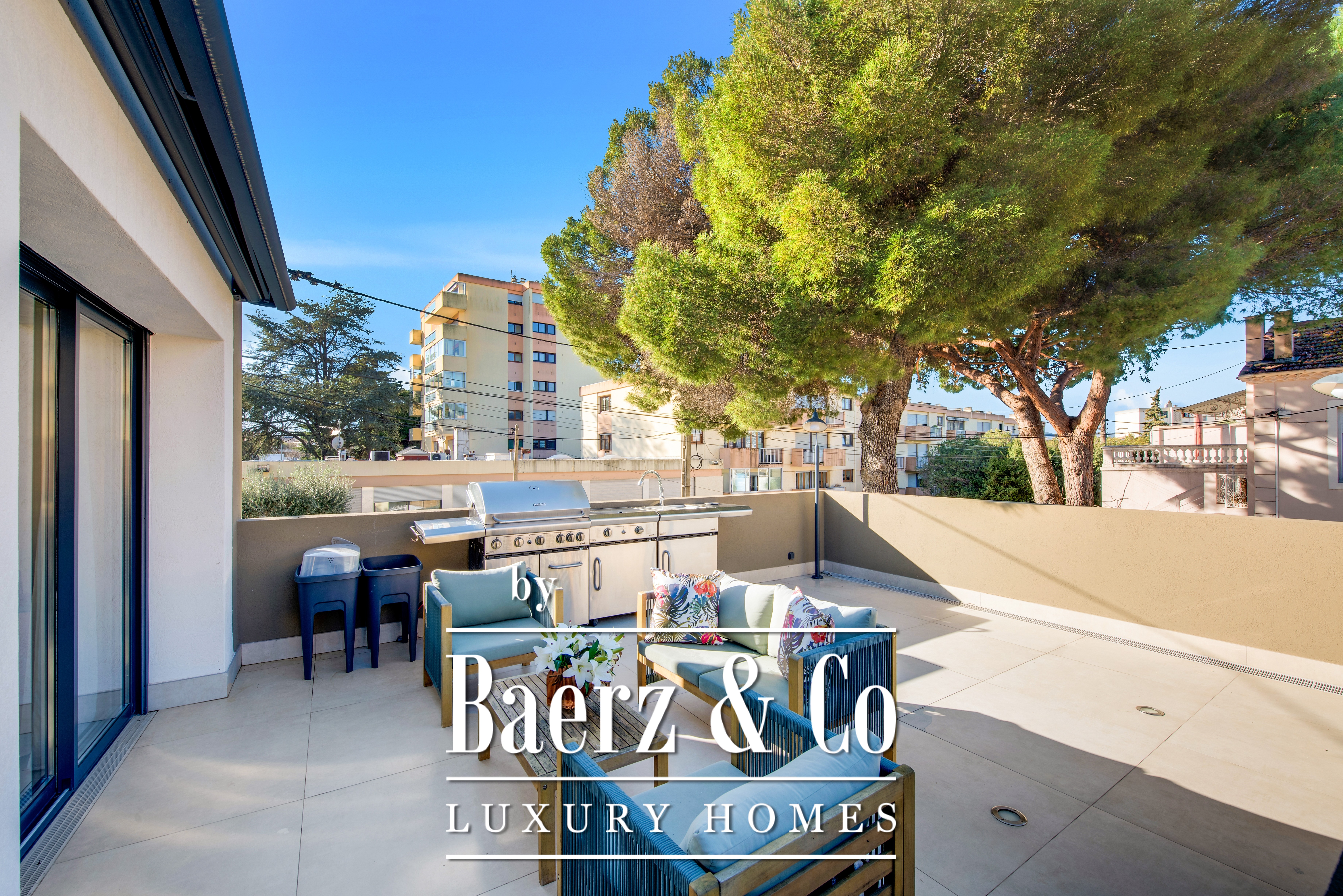 Apartment Saint-Raphaël Town Centre sits at the heart of the city, offering a rare blend of restoration and space. This renovated property spans 125 m², with two en-suite bedrooms, each thoughtfully detailed with its own shower room or bathroom. The living room is open and luminous, south-facing for maximum natural light, offering a rhythm that shifts gently from sunrise to afternoon glow. A 28 m² terrace extends the living space outdoors, capturing the Côte d’Azur sun and inviting quiet moments or convivial gatherings.