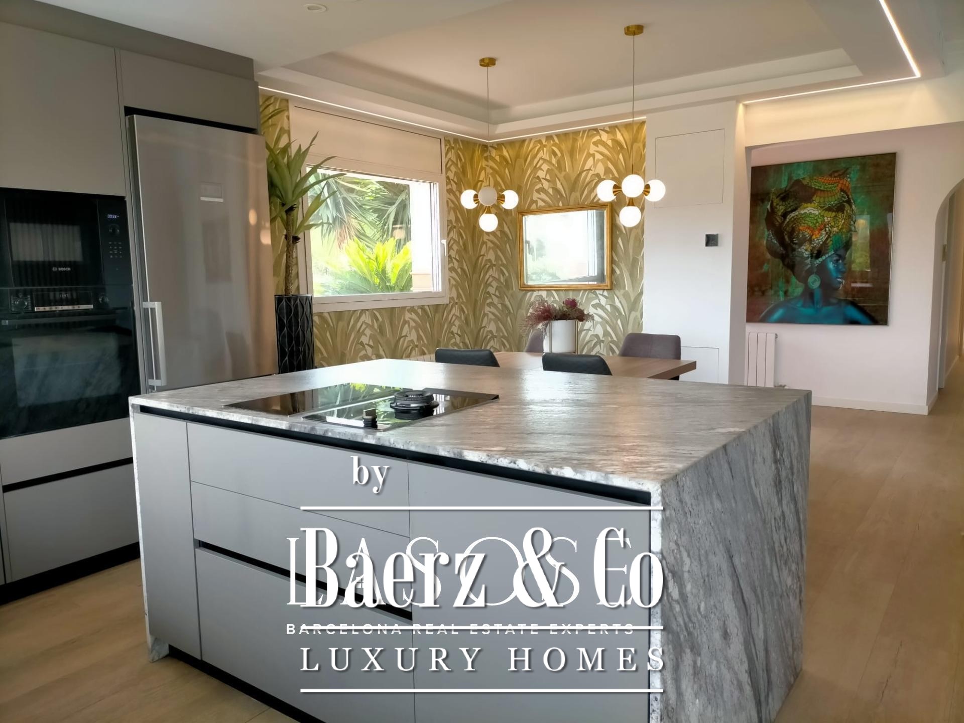 Villa Sant Pere de Ribes is quietly positioned in the esteemed Els Cards residential area, set between Sitges and Sant Pere de Ribes, where privacy and panoramic views define every living moment. This five-bedroom, three-bathroom villa blends traditional Spanish architecture with contemporary refinement. Recently renovated interiors preserve authentic details such as arches and natural textures, while bringing in clean modern lines and warm tones. The open-plan main floor flows across kitchen, dining and living spaces, illuminated by abundant sunlight from windows on two sides. A statement fireplace centers the living area, offering an inviting gathering point year-round.