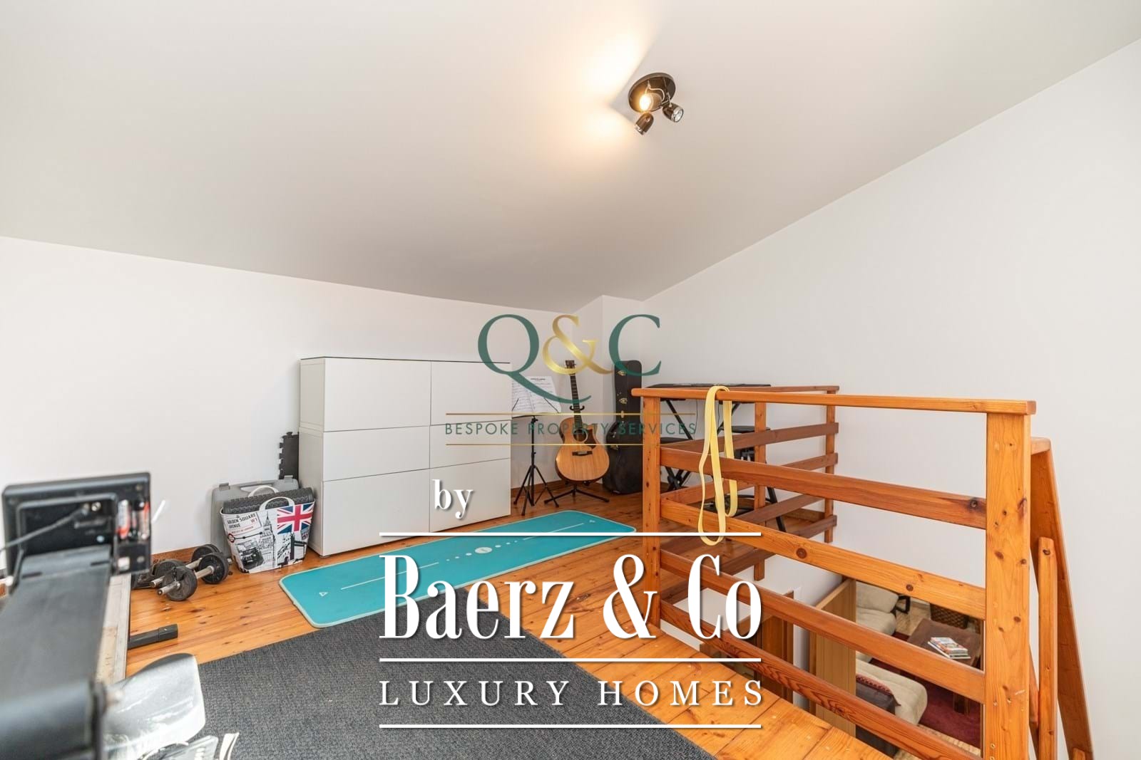 A calcada driveway introduces the estate, leading to a spacious garage and practical utility area that connects to the heart of the home—the equipped kitchen and dining area. The main reception hall welcomes light and garden views, flowing seamlessly to living and entertaining spaces. The principal suite, framed by dual garden aspects, includes an en-suite with a roll-top bath and walk-in shower, establishing a private sanctuary within the home. Each of the four bedrooms features an en-suite bathroom, while a mezzanine level in one creates a retreat for work or leisure, spilling onto a sheltered roof terrace.