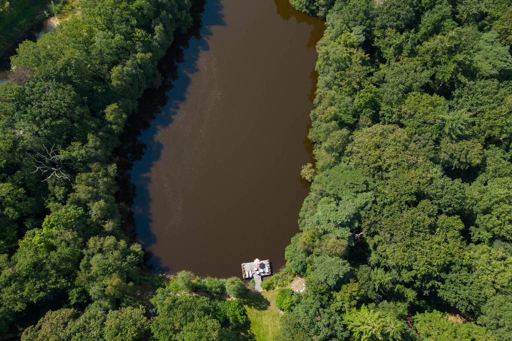 The landscaped estate extends to 5 hectares and borders the private Vegelin woodland, including a large pond. The grounds feature a terrace, a historic tea pavilion dating from circa 1900, a waterside gazebo and a carriage house with plans for conversion into additional guest accommodation or residential space with a separate driveway.