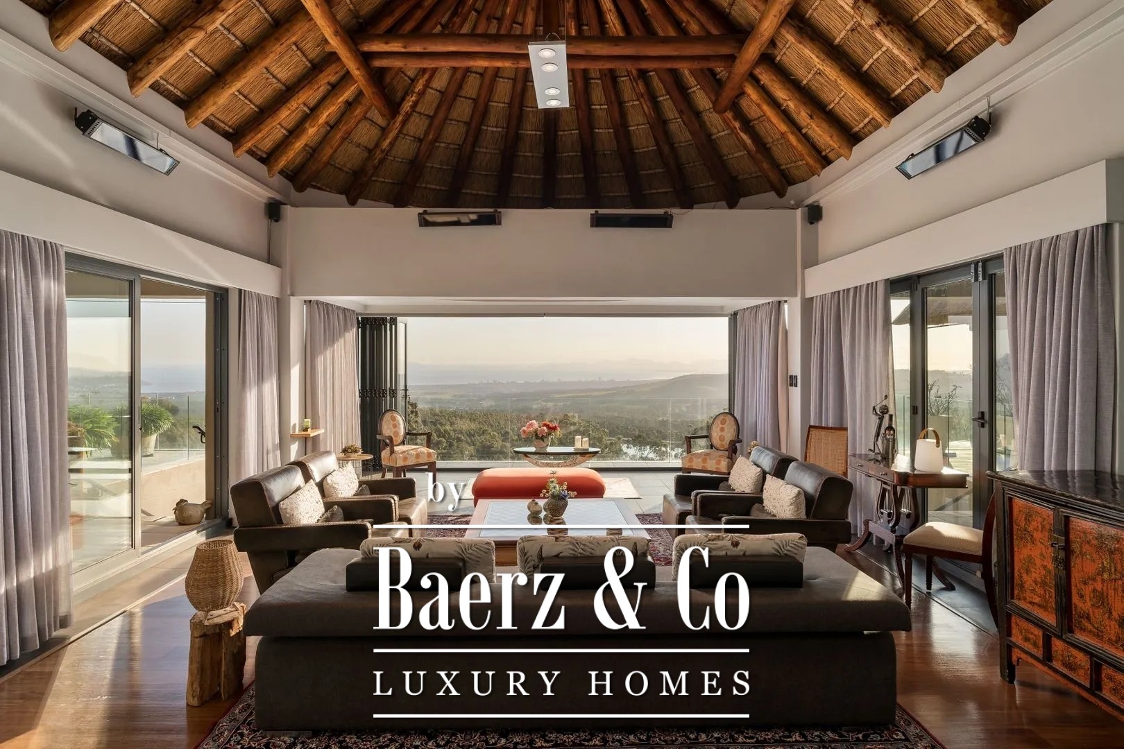 Estate Somerset West presents a rare convergence of scale, architectural presence, and environmental consciousness, set on approximately 25,000 m² of secluded fynbos. This estate is both a sanctuary and an accomplishment, with 1,500 m² of refined space designed for those who value both privacy and lasting connection to place. The property’s sweeping mountain and sea views, including False Bay and Tafelberg, form a living panorama visible from every vantage point.