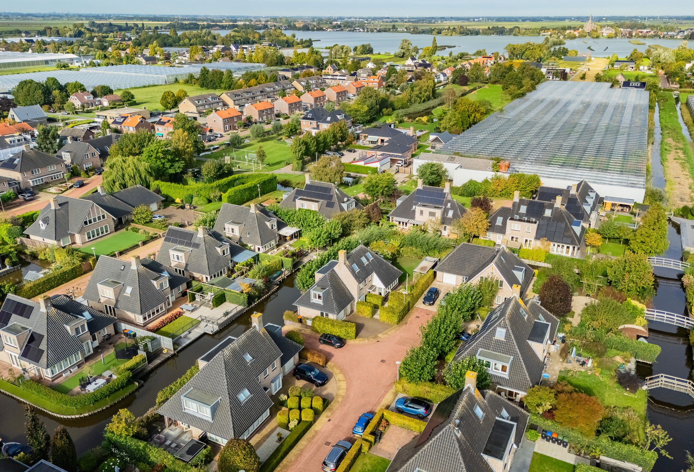 This spacious villa is located on a quiet street in the small-scale villa park Waterrijck, where water, greenery, and light come together. You will be living here in Papenveer in a quiet neighborhood of Ter Aar, part of the municipality of Nieuwkoop, near Nieuwveen and Langeraar. In this family-friendly neighborhood, you will find highways, the De Aarweide outdoor swimming pool, playgrounds, two golf clubs, and the Liemeer country club. In the middle of the Green Heart of the Netherlands, you will live surrounded by nature, in a large walking and cycling network. You can walk or cycle to Langeraar between two lakes and enjoy the water sports around you. Within a 5-minute bike ride, you will find yourself in the village centers with shops, supermarkets, schools, and sports facilities.
