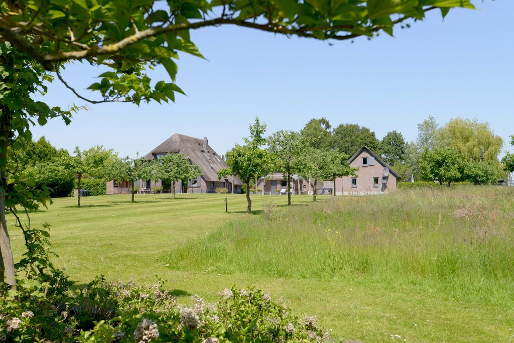 Accessed via an impressive entrance gate from the Quabbenburgerweg through the Wellinkhofweg, the estate immediately conveys a sense of exclusivity. The ensemble comprises a characterful main residence, a stylish detached guest house with veranda and sauna, and a substantial thatched double garage with loft, all designed in harmonious architectural style.