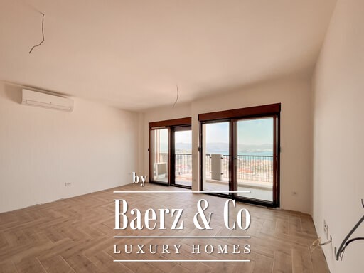 Structure of the apartment: hallway, living room with kitchen and dining table, 2 bedrooms, 2 bathrooms and 2 terraces. The apartment itself has 74,01m2, while its terraces have 13,21m2. It has a view of the sea and the mountains that surround it. The apartment will be delivered with finished floors, finished tiles, equipped bathroom and equipped air conditioning.