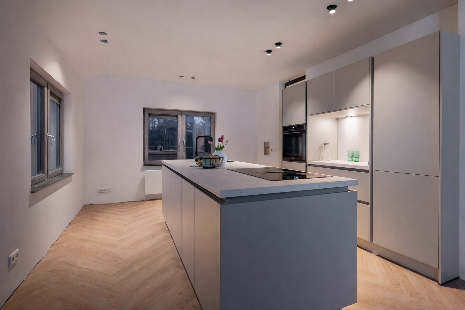 The living area is located at the rear and is fully oriented toward the panoramic view. Thanks to the large windows, natural light floods in, and the indoor and outdoor spaces blend seamlessly. With an XL garage, a practical layout, and all essential living amenities on the ground floor, this home combines luxury with lifetime-ready living. The home features a spacious, multifunctional basement and a practical attic.