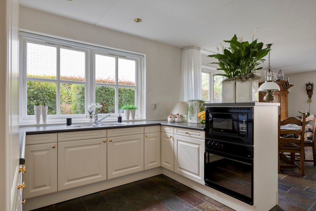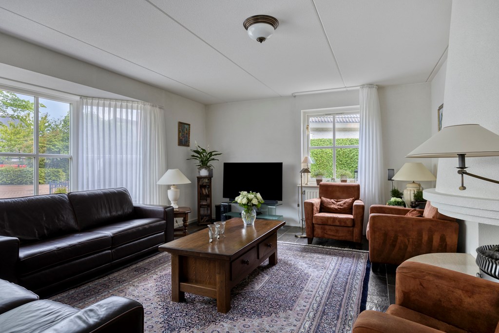 The moment you drive up the driveway, you’ll feel it: peace, abundant space, and quality. This spacious detached home offers approximately 175 m² of living area and sits on a 571 m² plot. It has been impeccably maintained and exudes class from the very first glance. Inside, you’ll find a bright living room, a cozy live-in kitchen, a ground-floor office, and two very large bedrooms. A practical utility room and a second bathroom complete the living comfort. The surprisingly large 57 m² garage offers countless possibilities—from hobby space to storage, or even an additional workspace or bedroom. Surrounding the house is a beautifully landscaped garden with multiple seating areas, mature planting, a pond, and ample privacy. Here, you’ll enjoy outdoor living without sacrificing comfort or accessibility. This home combines solid craftsmanship with functional luxury—an exceptional opportunity for those seeking a tranquil setting with plenty of extra space in reserve.