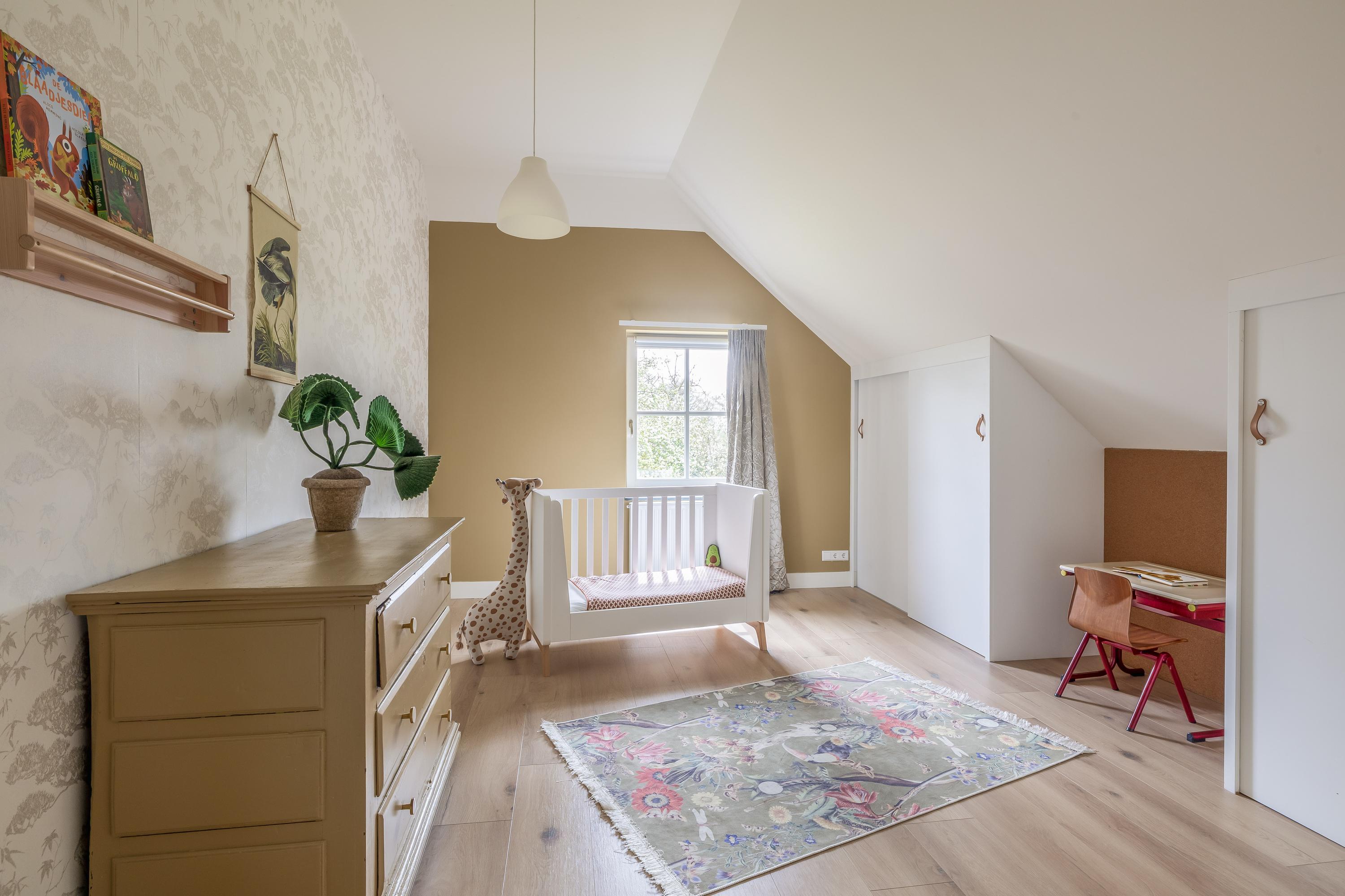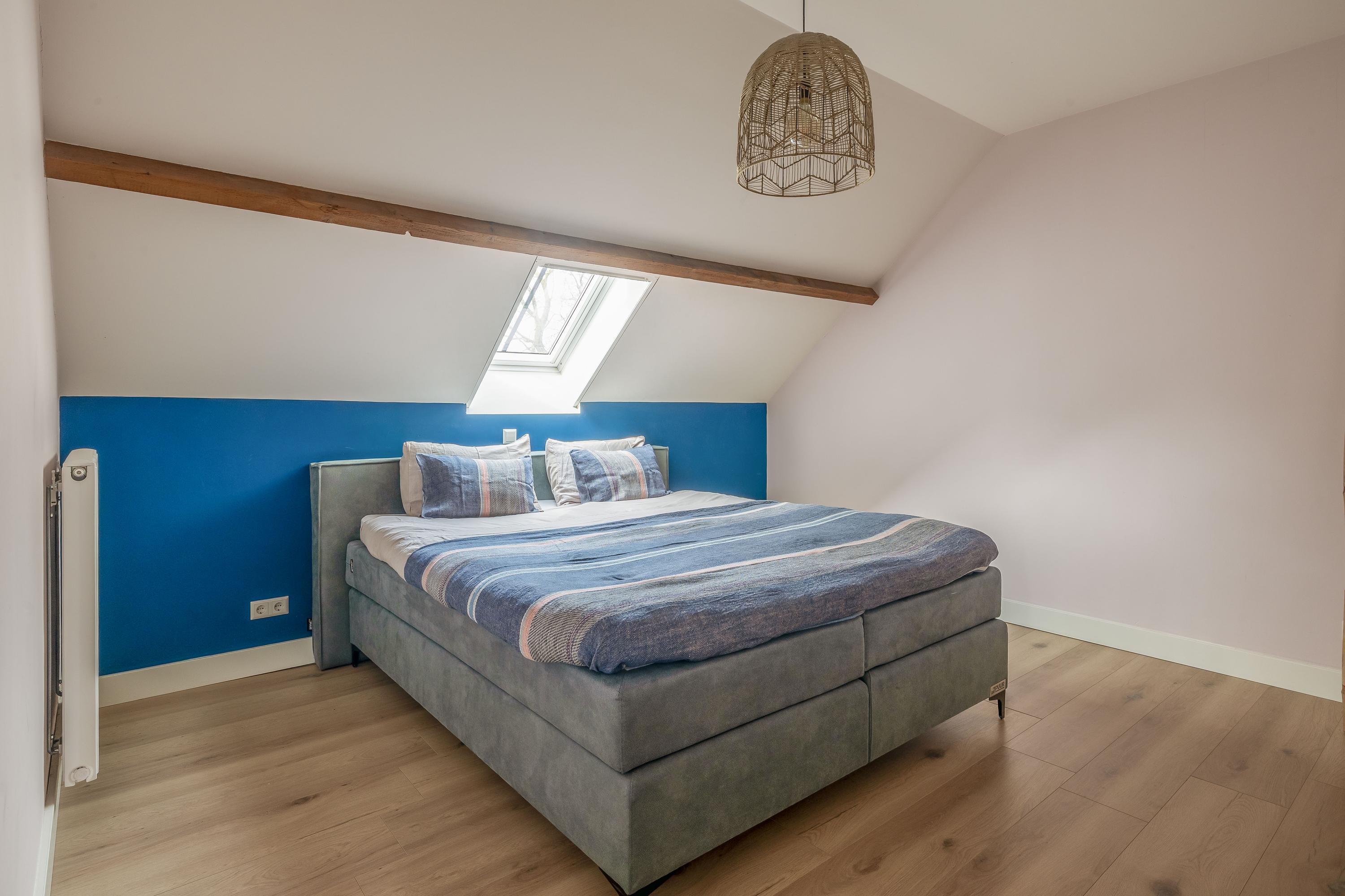 With a living area of 226 m², the property offers a comfortable and move-in ready living space. The living areas are spacious and light, flowing logically into one another. The layout is well thought-out, featuring, among other things, a kitchen-diner and a bedroom on the ground floor. Upstairs, there are three spacious bedrooms and a modern bathroom, where exposed timber structures contribute to the atmosphere and authentic character of the whole.