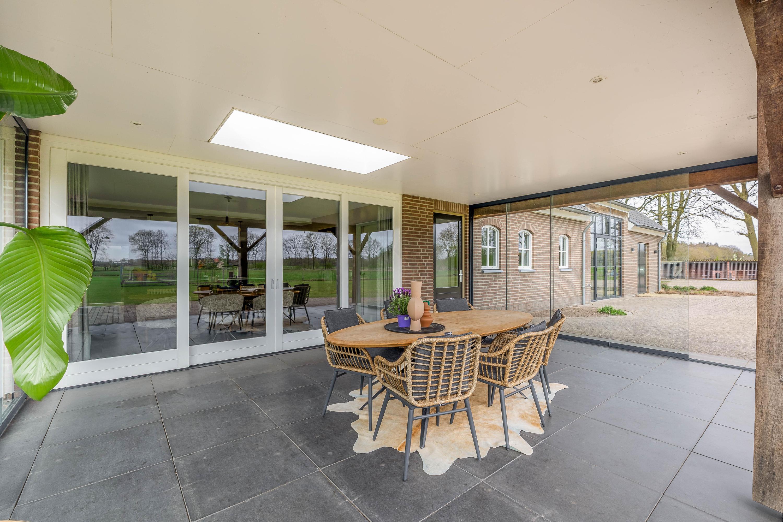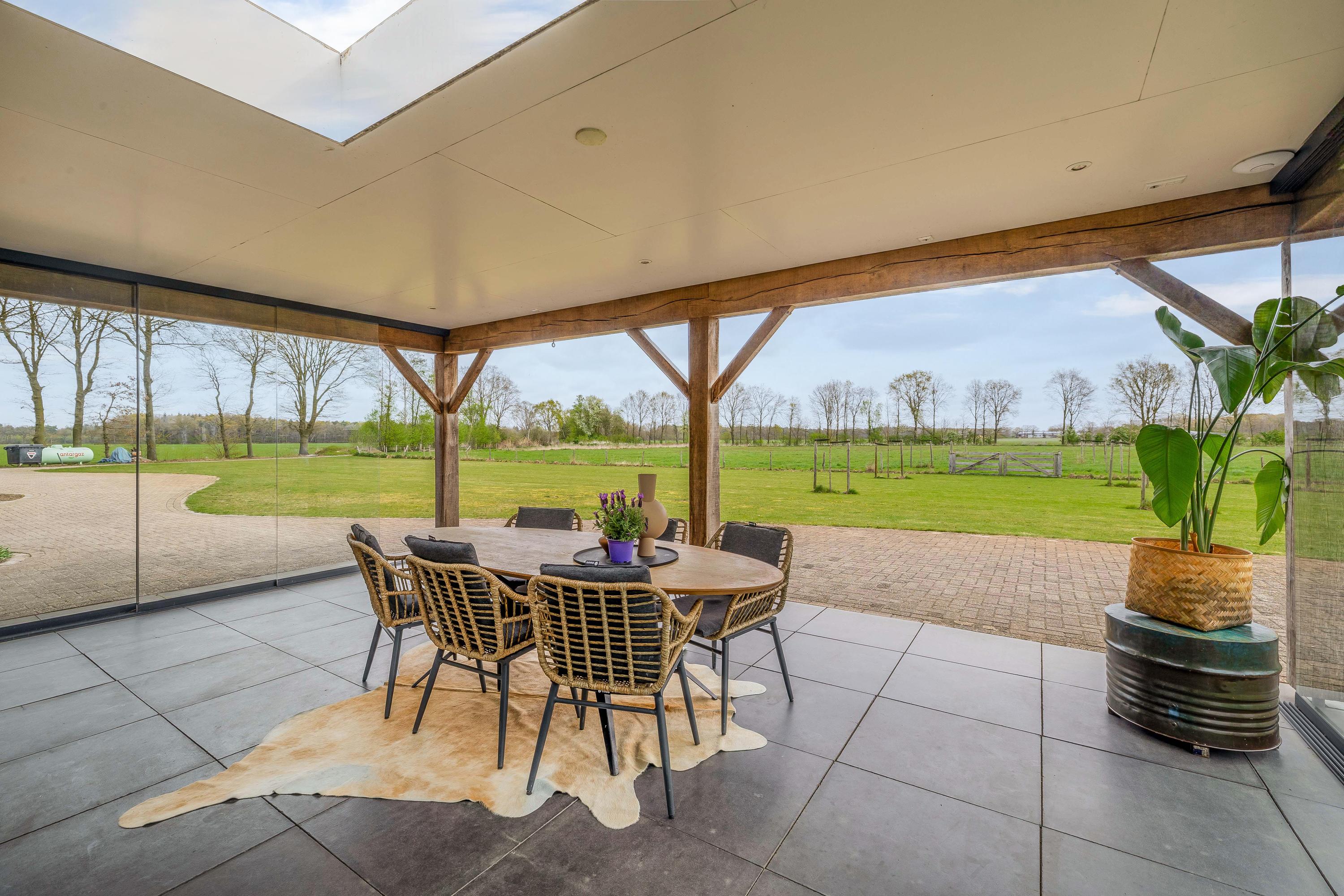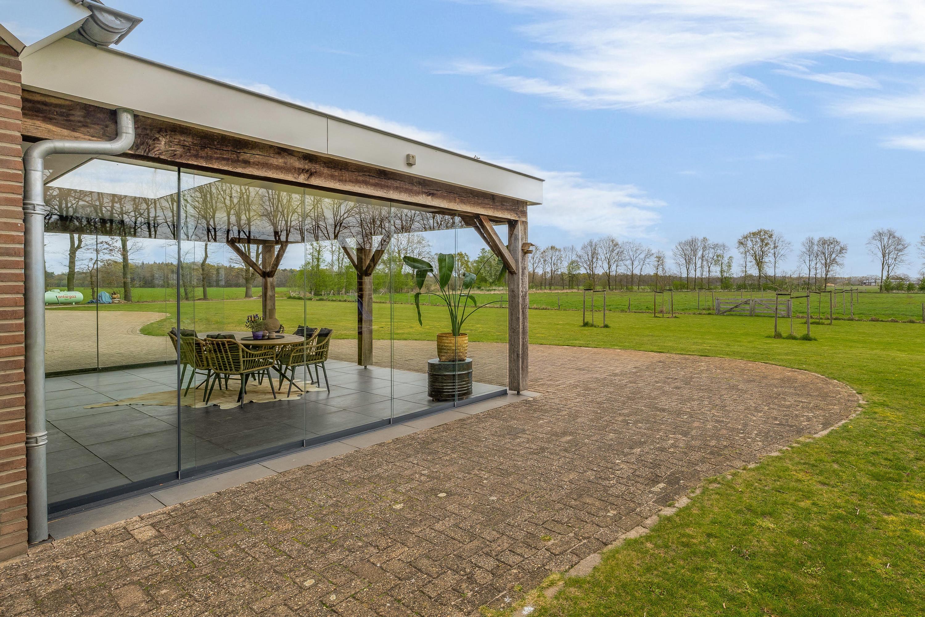 For lovers of the outdoors, the plot is an essential part of the experience. The garden surrounding the house features a covered terrace, a spacious lawn and an orchard with various fruit trees. The adjacent pasture also makes this location particularly suitable for keeping (pet) animals. Part of the plot is landscaped with rows of trees and natural vegetation, which contributes to the quality and biodiversity of the whole. Landscape management applies to this part (STILA scheme, until October 2027, with subsidy).