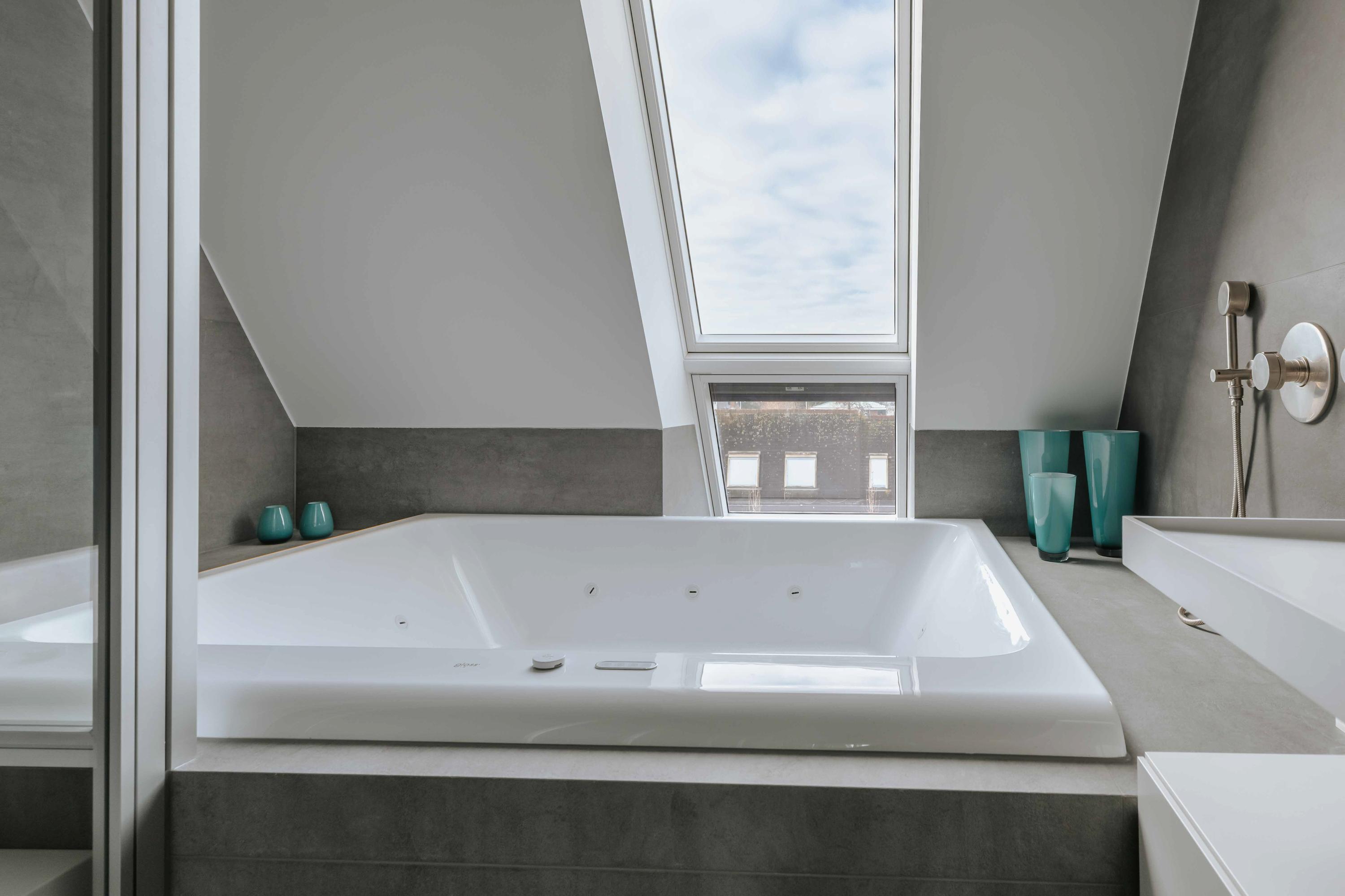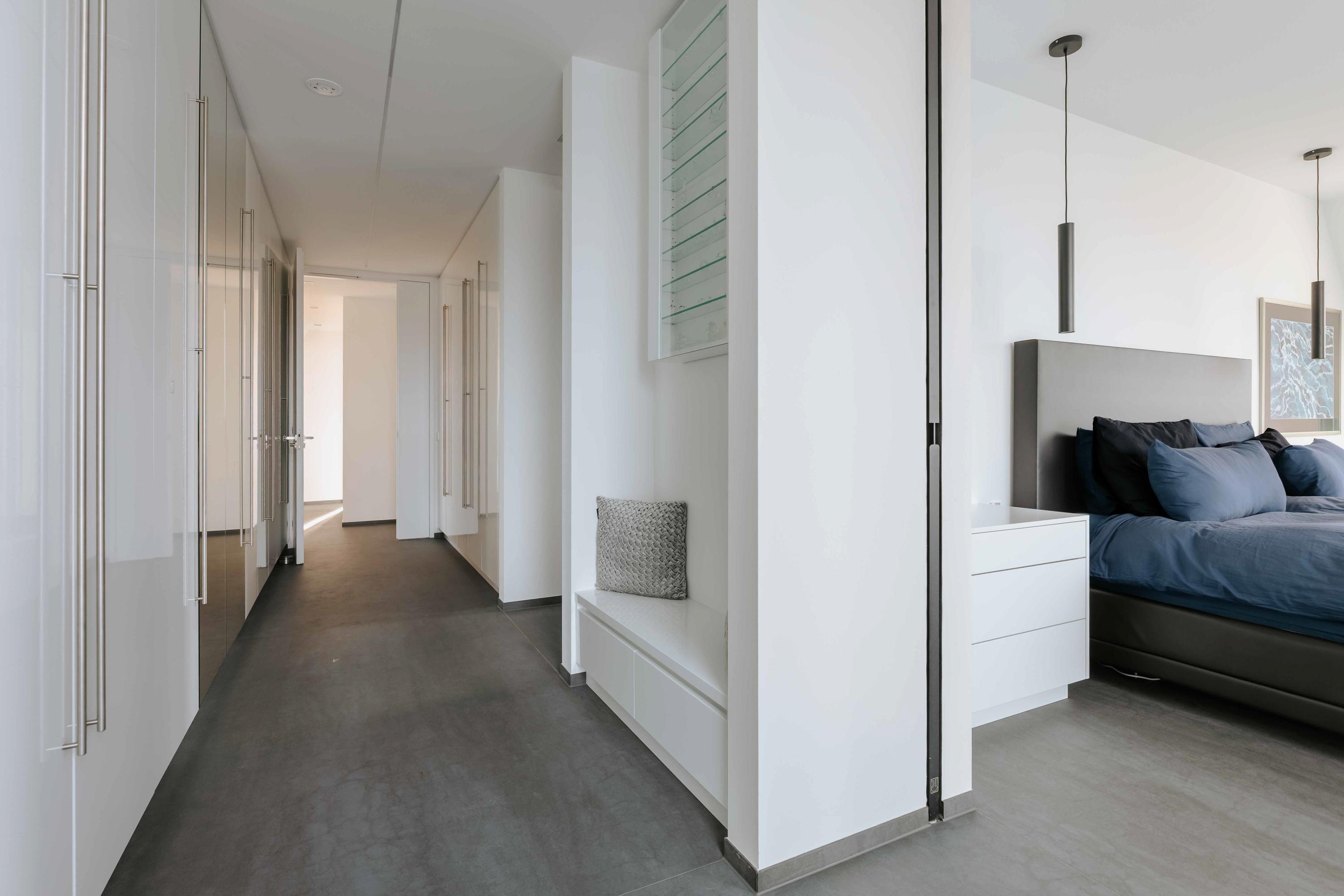 The second floor features three comfortable bedrooms and two luxurious bathrooms. The impressive master suite has a walk-in closet, air conditioning, and a fully equipped wellness bathroom with a sun shower, steam shower, and bathtub. All rooms have been finished with an eye for detail and feature custom cabinets and luxurious sanitary ware.