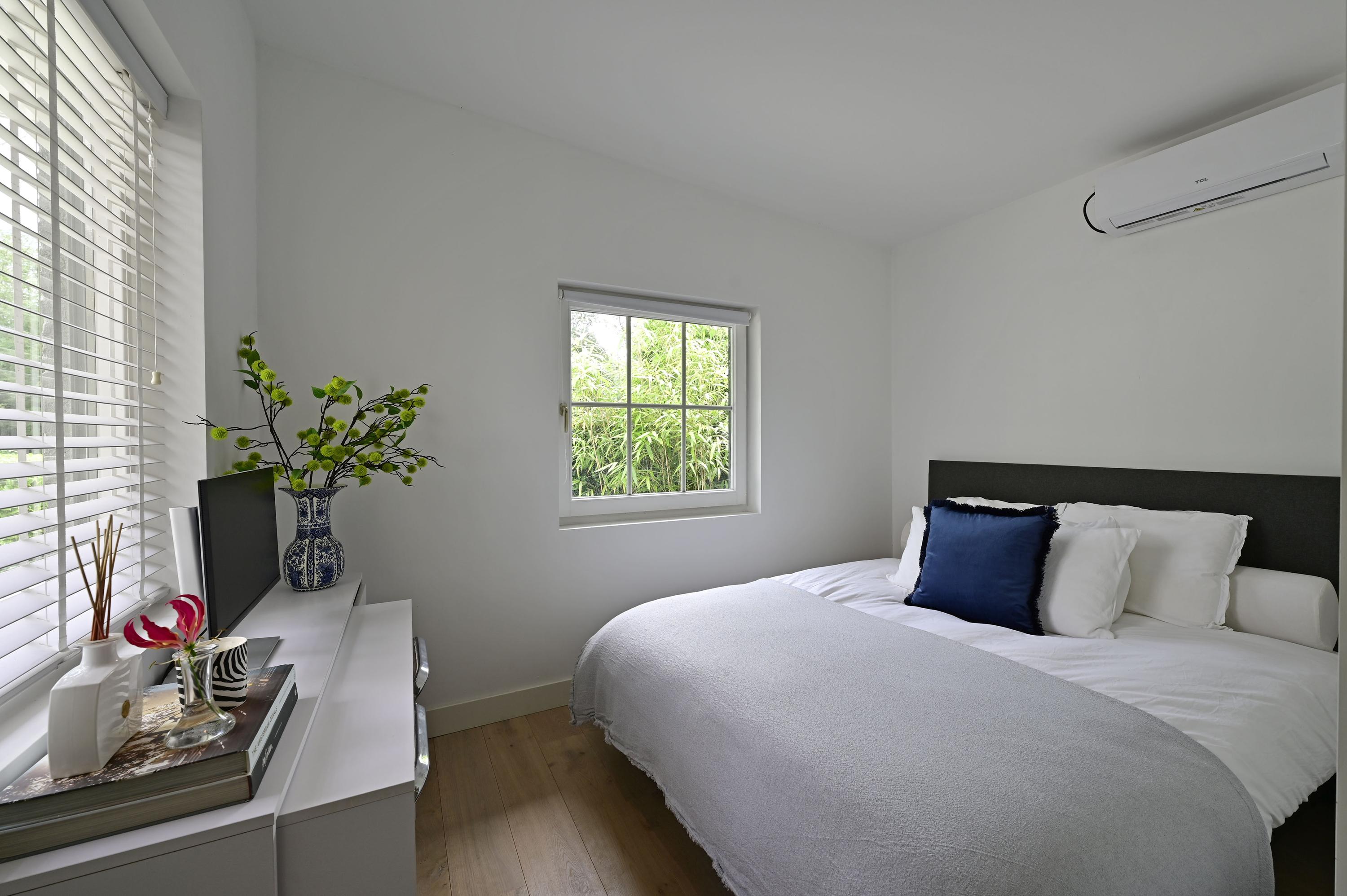 The second ground-floor bedroom is also spacious, features air conditioning, and has a private en-suite bathroom with walk-in shower, vanity, and toilet – ideal for guests or live-in children.