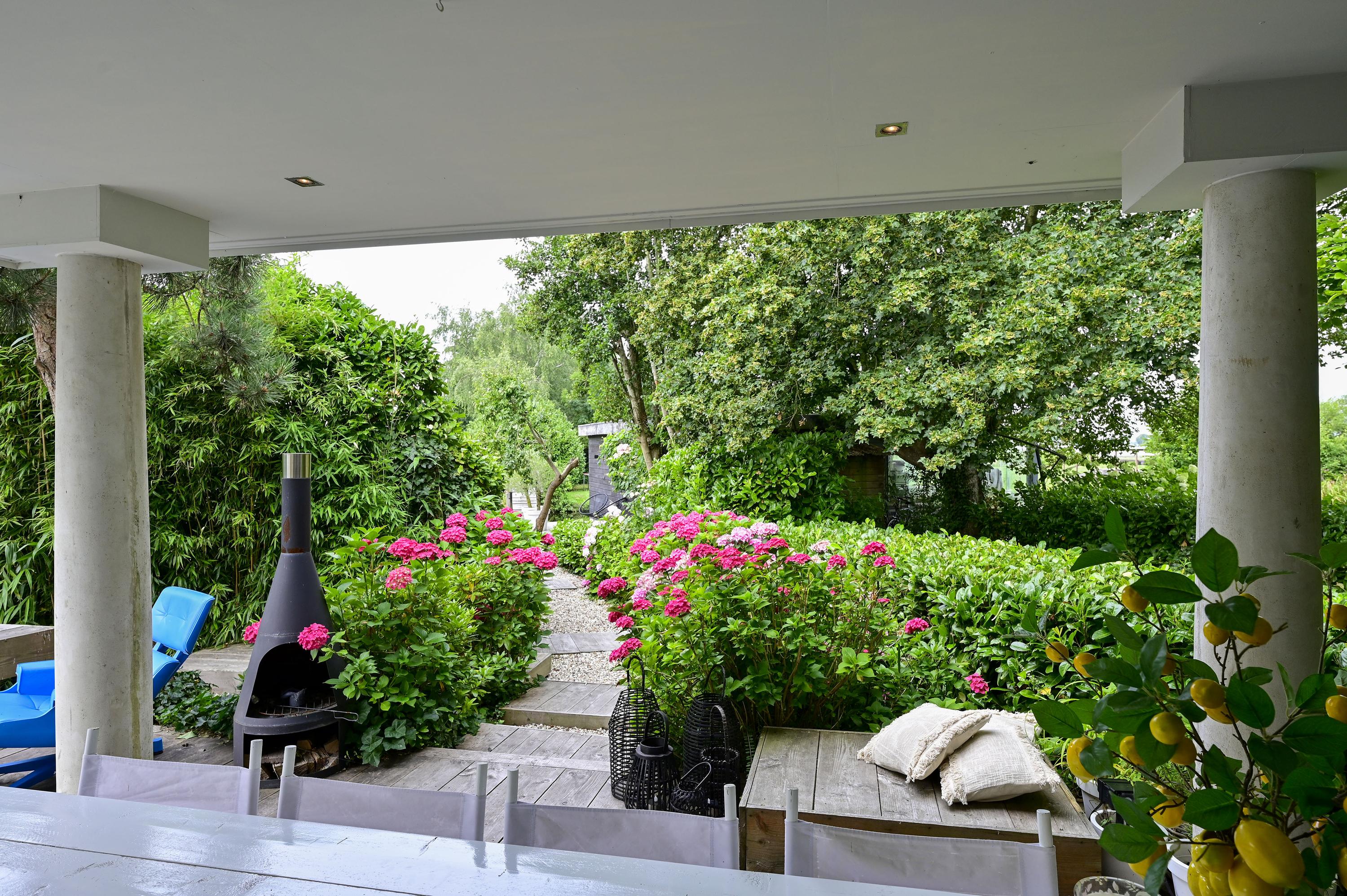Access to the villa is via a private driveway with an electric gate or separate pedestrian entrance on the Groenlandse Kade. Once inside, the beautifully landscaped front garden unfolds, offering ample parking for multiple vehicles. Expansion possibilities exist for those wishing to further personalize the home.