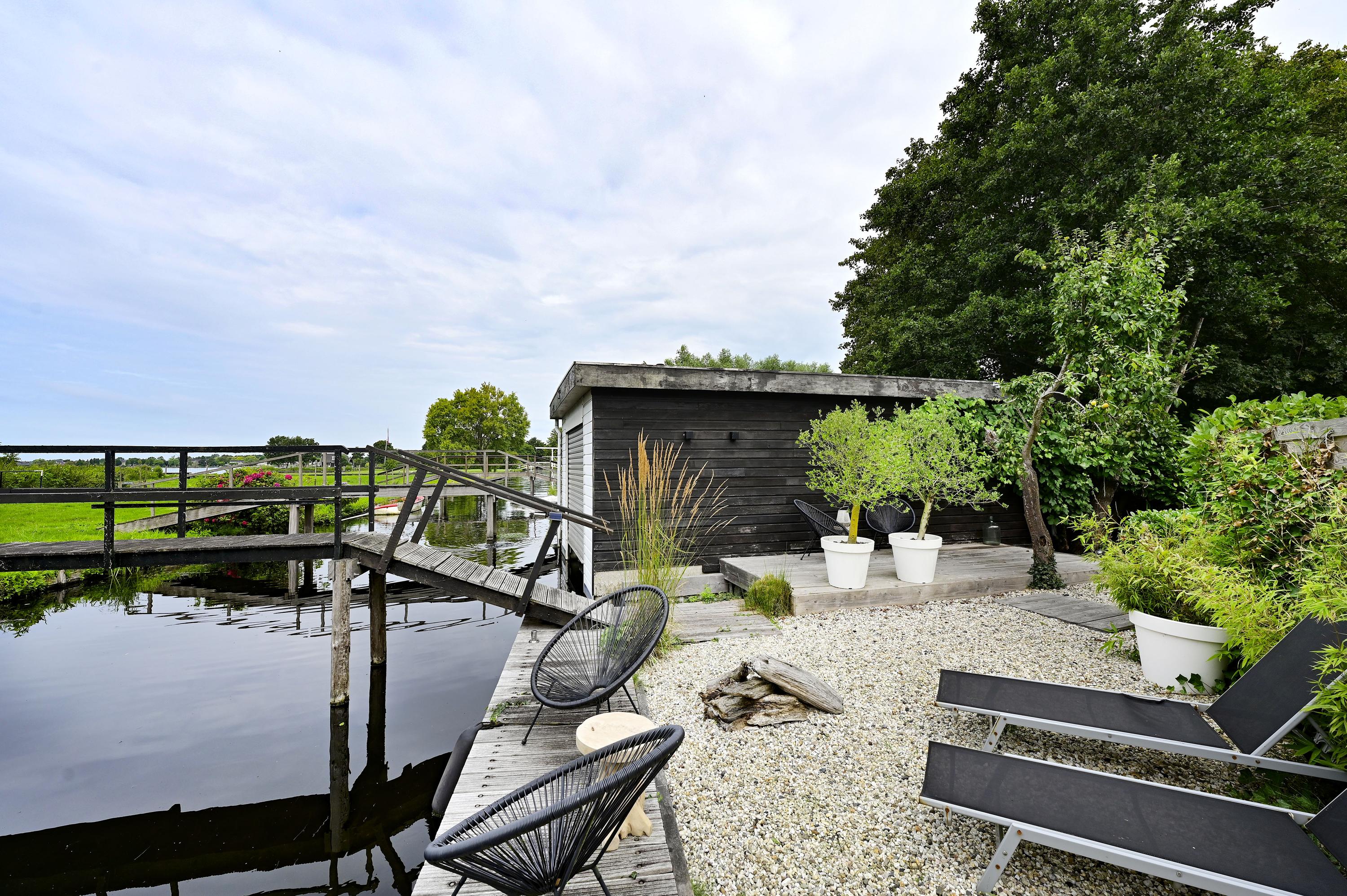 Set on a generous plot with ideal sun exposure, abundant privacy, and direct water access, this villa is a dream for outdoor living. The beautifully landscaped, low-maintenance garden features multiple terraces, a compact pool, a six-person jacuzzi, and a spacious covered patio with a BBQ and dining table – the perfect place where indoor and outdoor living blend seamlessly. A charming footbridge leads to a rented private island with a mooring spot for your boat – a rare luxury for water sports enthusiasts. Additional boat moorings are also available.