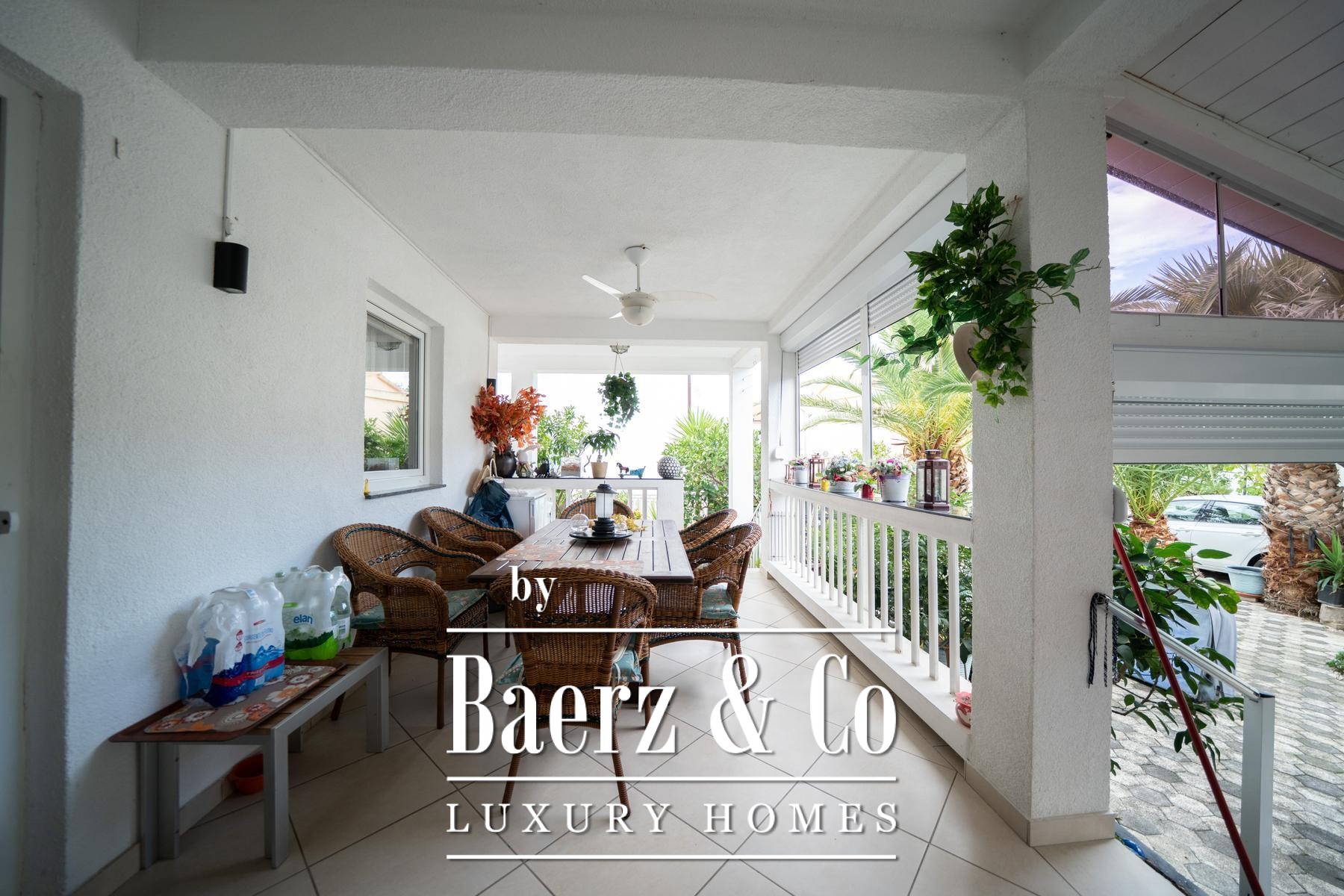 water heating has been installed throughout the house.Solar panels have also been installed, as well as an additional solar hot water system located in the garage/outbuilding of 25 m2. There is also an additional bathroom here.The yard is beautifully landscaped and abundant with greenery and Mediterranean trees that create a special atmosphereThis property is a perfect combination of comfort and functionality, suitable for use throughout the year or as an investment in tourism.The distance from the sea and the beach is only about 70 meters.Neat ownership.We are at your disposal for more information.