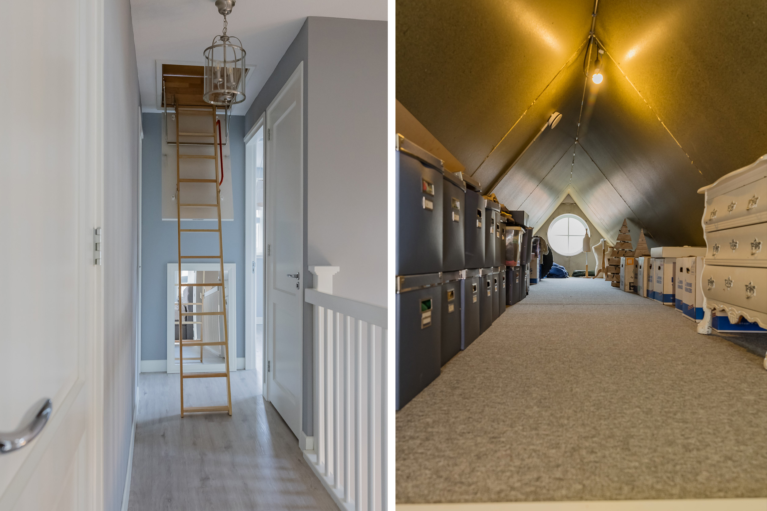 A loft ladder leads to the spacious attic with standing room.