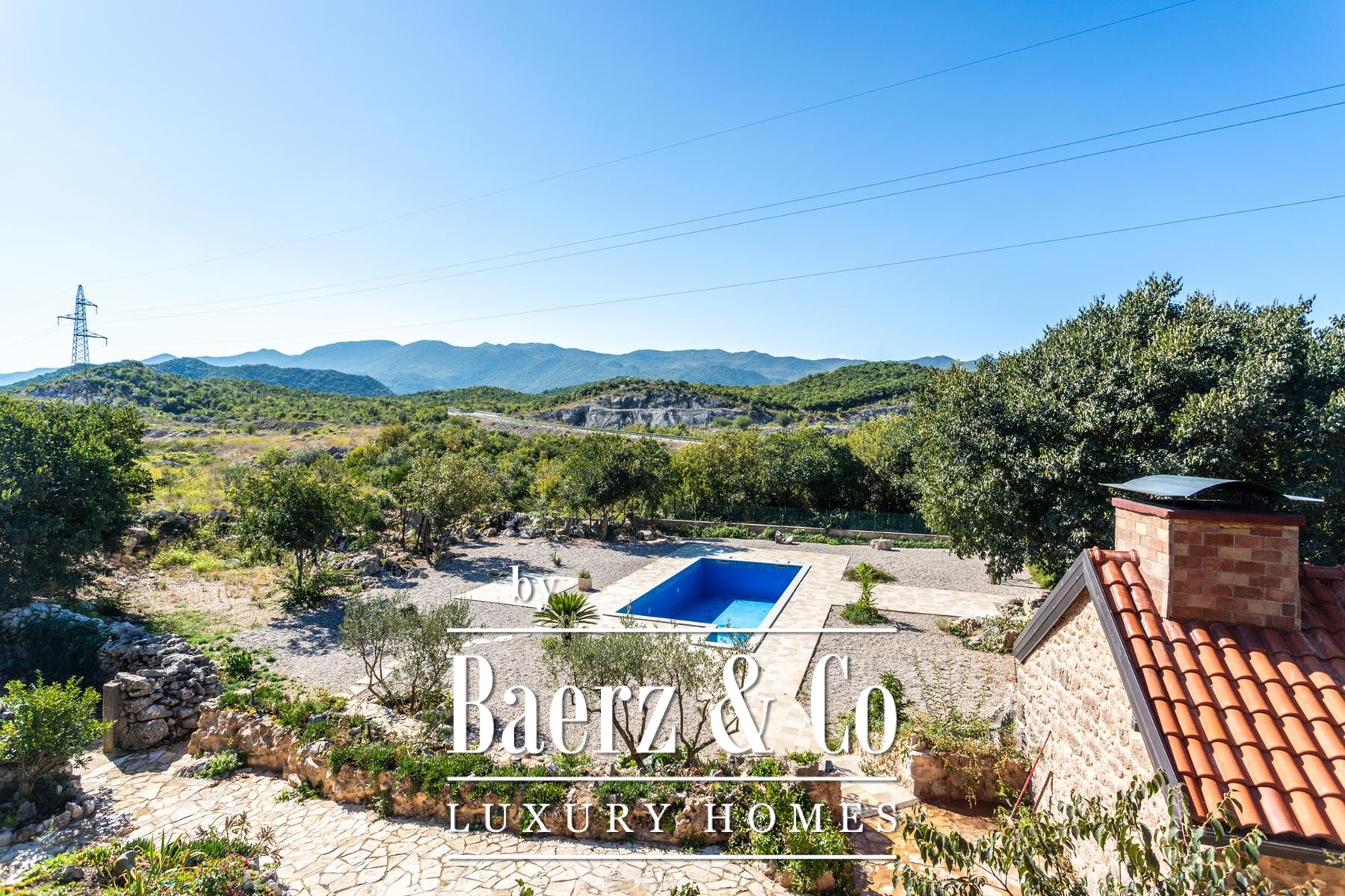 sunbathing area made of natural pebbles. The entire pool area is discreetly enclosed by stone walls and lush natural greenery, ensuring complete privacy.The estate also offers numerous additional amenities for complete enjoyment. There is a modern bocce court, a spacious garden with olive trees, and a dedicated space for animals. Three dilapidated houses offer exceptional potential for further renovation and expansion. For gourmet experiences, there is a furnished tavern, a small wine cellar, and a professionally equipped kitchen. This exceptional property is an ideal opportunity for multiple families or one seeking a spacious home with opportunities for relaxation, entertainment, and creating unforgettable memories in the heart of Dalmatia.