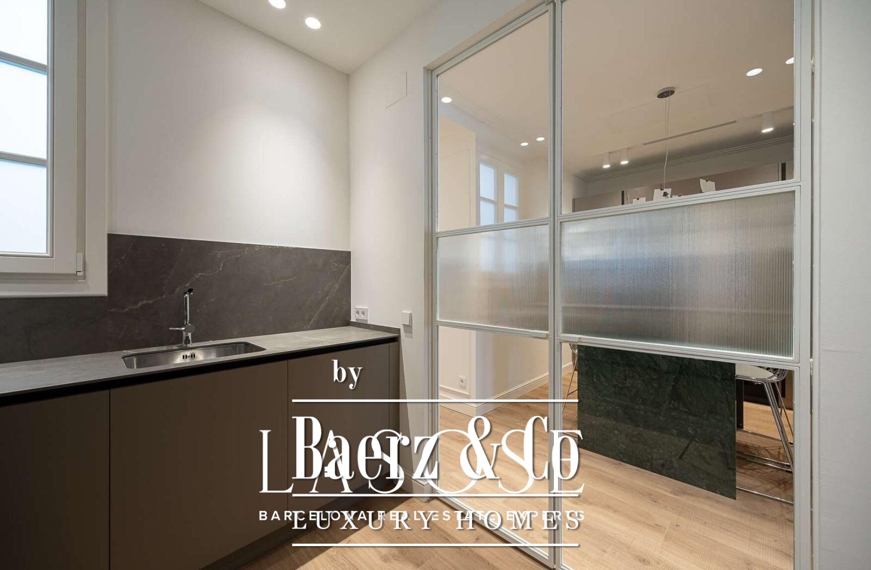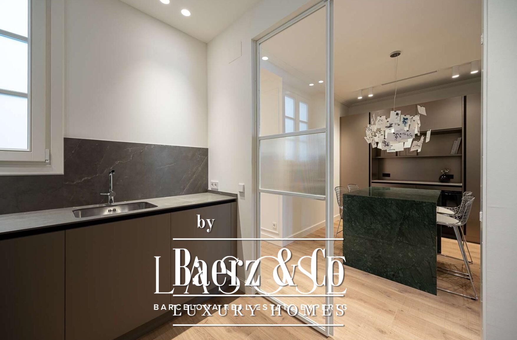 Ubicada en la tercera planta con acceso por ascensor, esta vivienda modernista Barcelona Quadrat d'Or está bañada de luz natural en todos sus amplios espacios. La galería orientada al suroeste y los techos abovedados catalanes originales aportan un ambiente de privacidad y sofisticación. Cada elemento de la reciente y exclusiva reforma respeta la arquitectura histórica e integra las más avanzadas comodidades contemporáneas. Suelos de parquet tono roble Parador AC 5, armarios a medida de ARMONY, electrodomésticos MIELE, climatización inteligente y una suite principal con vestidor elevan la experiencia cotidiana.