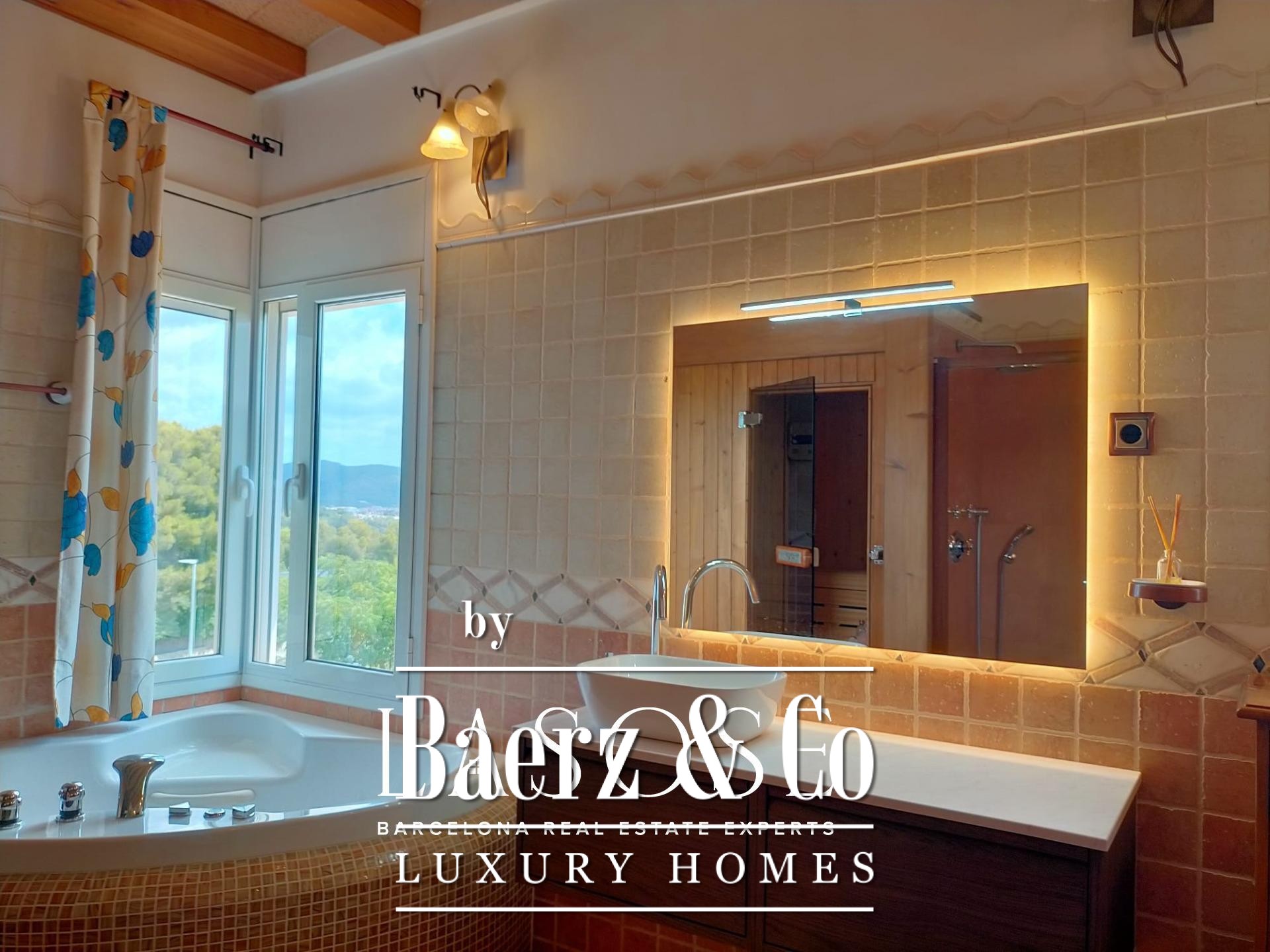 La cocina está completamente modernizada y se organiza alrededor de una imponente isla de granito brasileño, con amplio espacio de almacenaje y acceso directo al comedor, ideal tanto para la vida familiar diaria como para encuentros sociales. Las cinco habitaciones han sido diseñadas cuidadosamente; la suite principal cuenta con baño en suite, equipada con bañera, ducha independiente, doble lavabo, bidé y una sauna privada para una auténtica relajación.