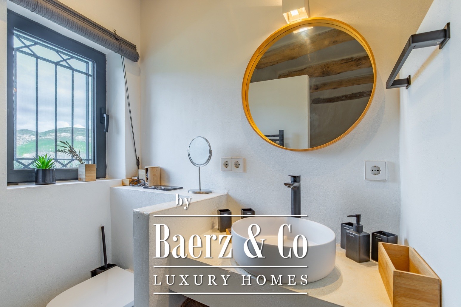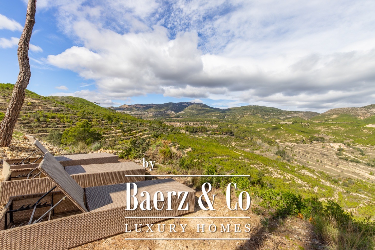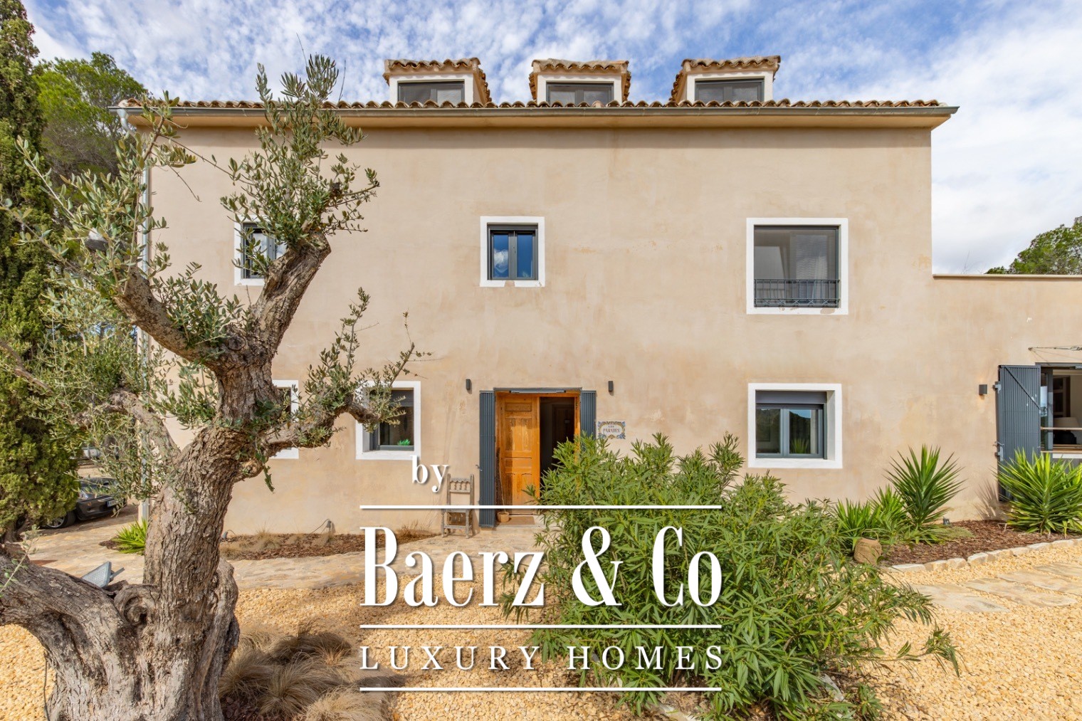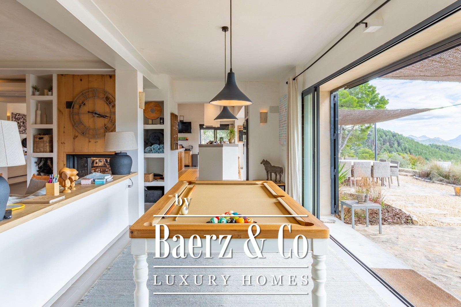 Finca Torremanzanas representa un tipo de propiedad poco común en una de las regiones interiores más tranquilas de España. Ubicada en 18 hectáreas de terreno mediterráneo exuberante a 850 metros de altitud, esta finca bellamente renovada se encuentra a solo 3 km del pueblo de Torremanzanas y ofrece vistas panorámicas al Puig Campana. Reformada con esmero en 2022, la casa principal de 450 m² fusiona acabados modernos de alta gama con auténtico carácter mediterráneo. Cada espacio de vida es luminoso y elegantemente sobrio, abriéndose a un paisaje de olivos, almendros y nogales.