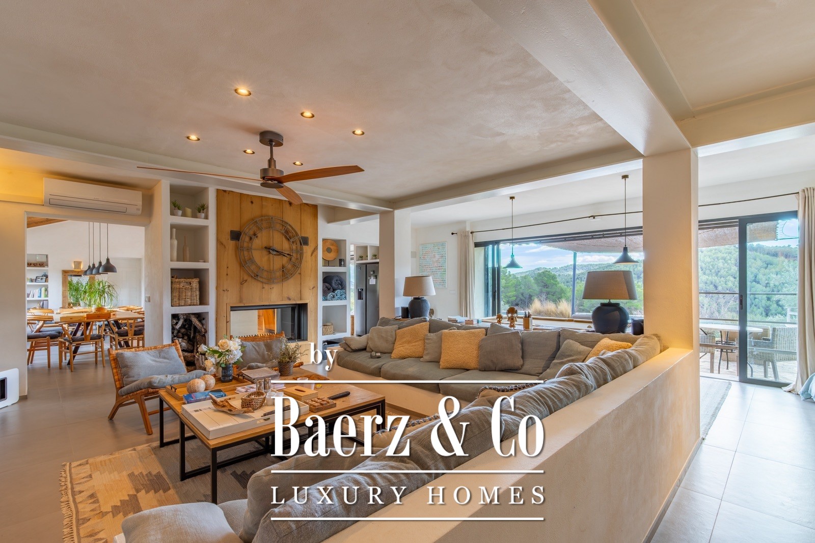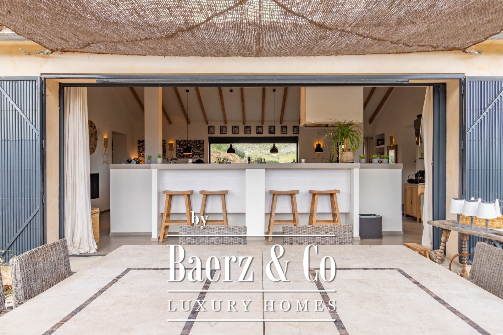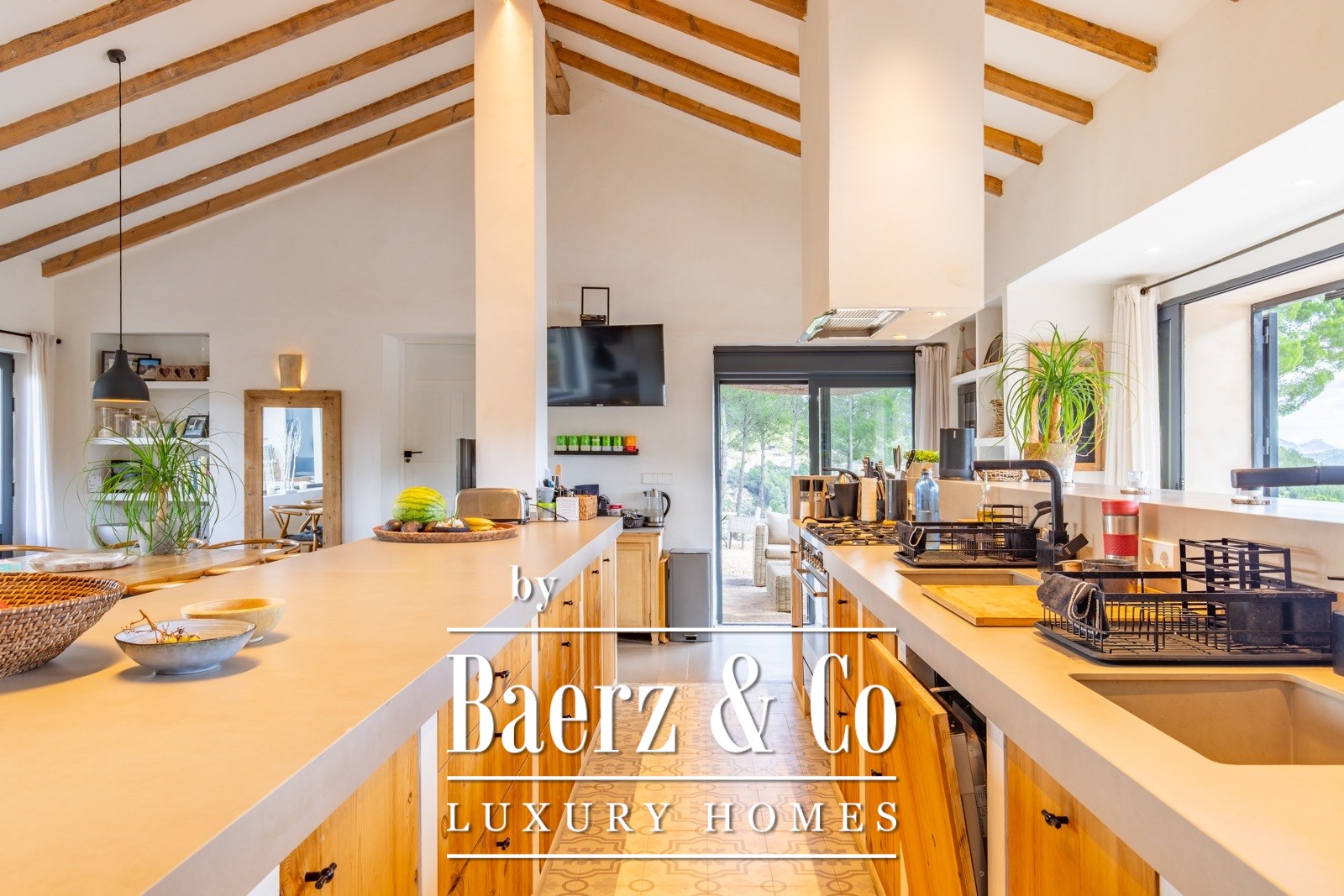 Siete dormitorios y cinco baños garantizan comodidad y privacidad, incluyendo dos en suite y un baño exterior adicional. La cocina está equipada con electrodomésticos Miele y Smeg. La luz natural inunda las amplias terrazas, mientras que una gran piscina climatizada y las zonas completamente valladas acentúan un ambiente de seguridad y serenidad. La infraestructura de la finca brinda verdadera independencia, con almacenamiento de agua de manantial de 21.500 litros, 35 paneles solares con baterías de litio avanzadas y un generador de emergencia de 23 kVA.