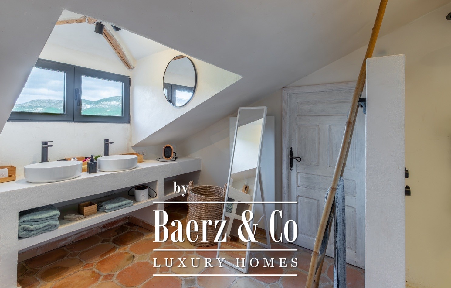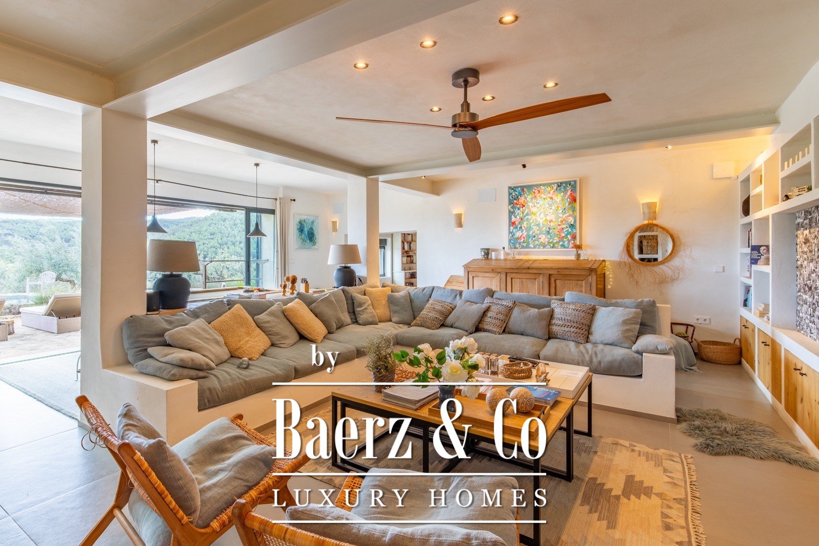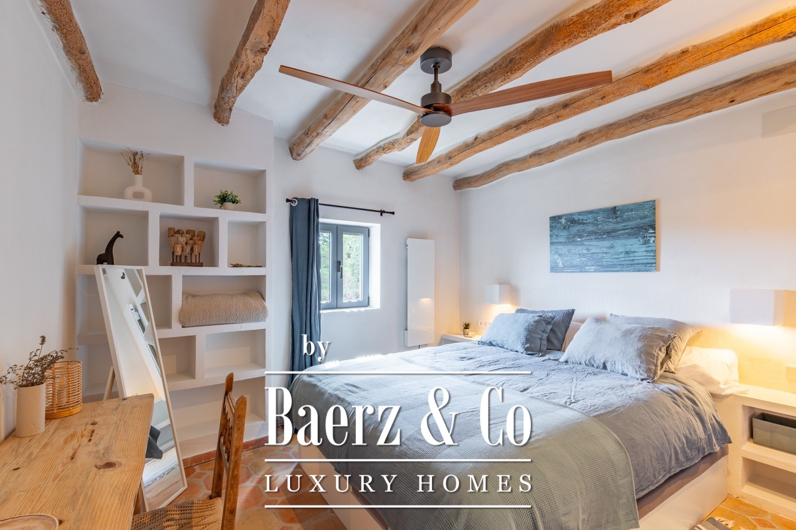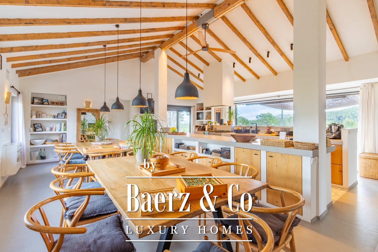 Siete dormitorios y cinco baños garantizan comodidad y privacidad, incluyendo dos en suite y un baño exterior adicional. La cocina está equipada con electrodomésticos Miele y Smeg. La luz natural inunda las amplias terrazas, mientras que una gran piscina climatizada y las zonas completamente valladas acentúan un ambiente de seguridad y serenidad. La infraestructura de la finca brinda verdadera independencia, con almacenamiento de agua de manantial de 21.500 litros, 35 paneles solares con baterías de litio avanzadas y un generador de emergencia de 23 kVA.