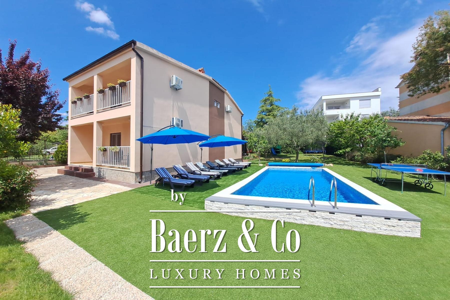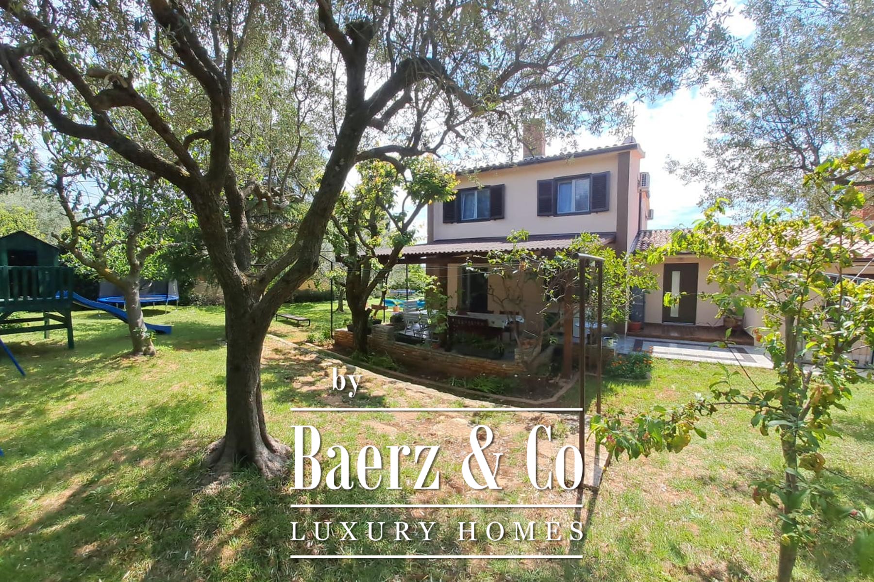 La maison familiale Fažana évoque une atmosphère sereine à seulement 600 mètres du littoral adriatique. Cette résidence de 200 m², nichée dans un jardin paysager de 815 m², harmonise la vie privée en famille et l’art de recevoir avec raffinement.