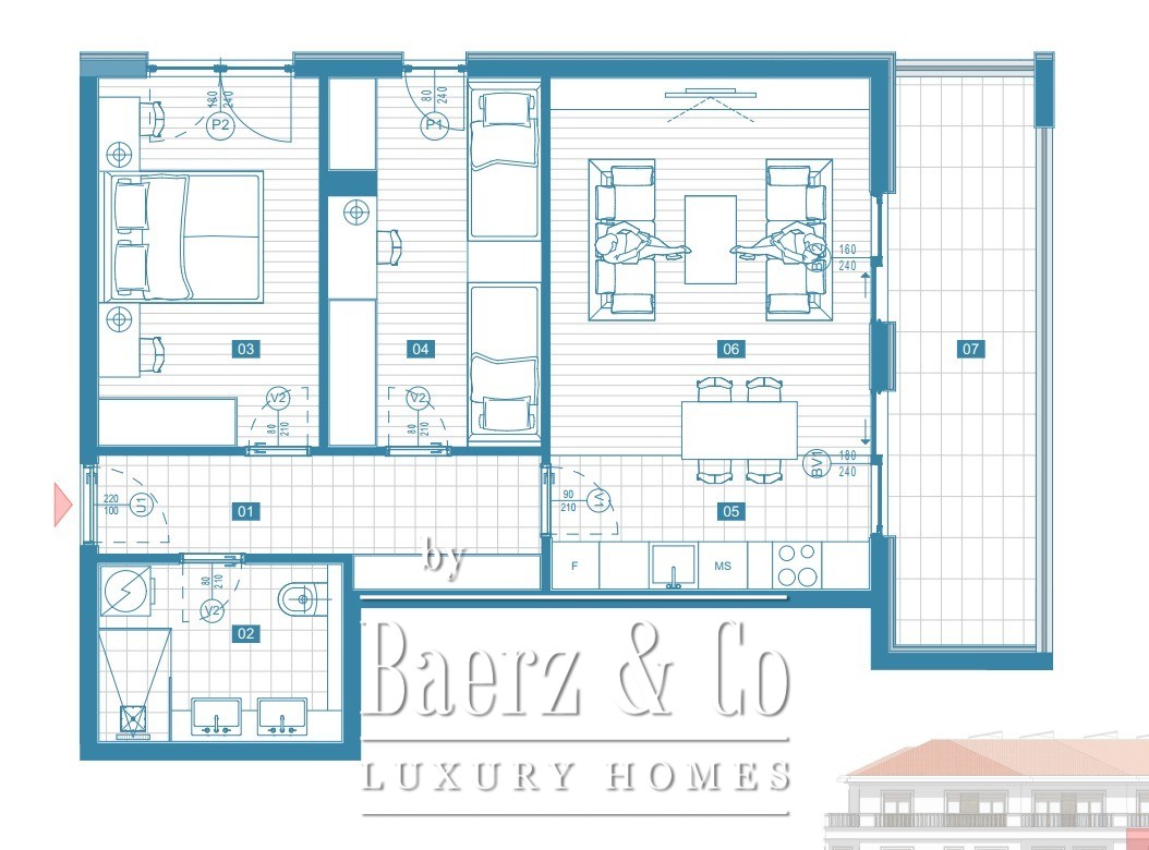 Les finitions sont prêtes à l’emploi, avec sols, carrelage, salle de bains et climatisation installés. Les résidents profitent d’un accès à une piscine commune ainsi que de la proximité de commodités établies ; restaurants variés et commerces d’alimentation se trouvent à distance de marche. L’aéroport de Tivat est situé à 17 km, facilitant l’accès à l’international.