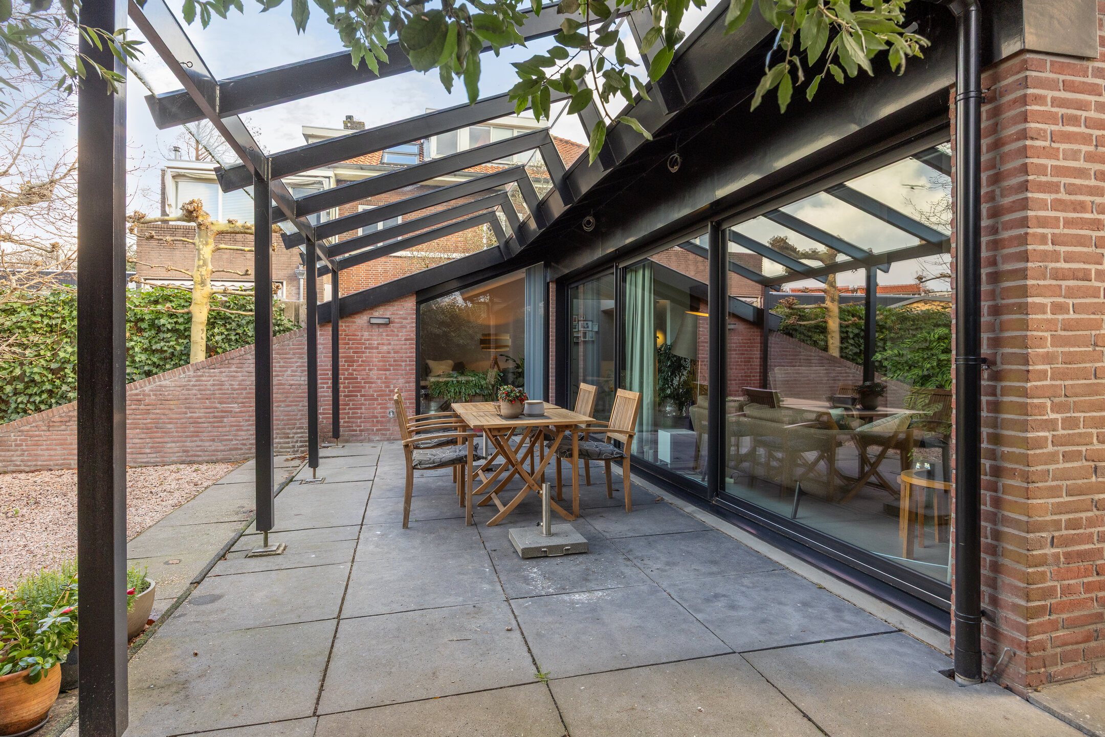 Cette maison individuelle à Oegstgeest réunit en toute discrétion architecture contemporaine et havre de paix, sur la Rhijngeesterstraatweg 199, au cœur d’un terrain verdoyant de 718 m². Elle offre 191 m² de surface habitable, comprenant trois chambres et deux salles de bains, avec la possibilité d’un mode de vie de plain-pied au rez-de-chaussée. Issue d’une rénovation architecturale majeure en 2006 et modernisée en continu, la propriété jouit d’un label énergétique A+ grâce à 12 panneaux solaires, une isolation performante et une pompe à chaleur hybride installée en 2023.