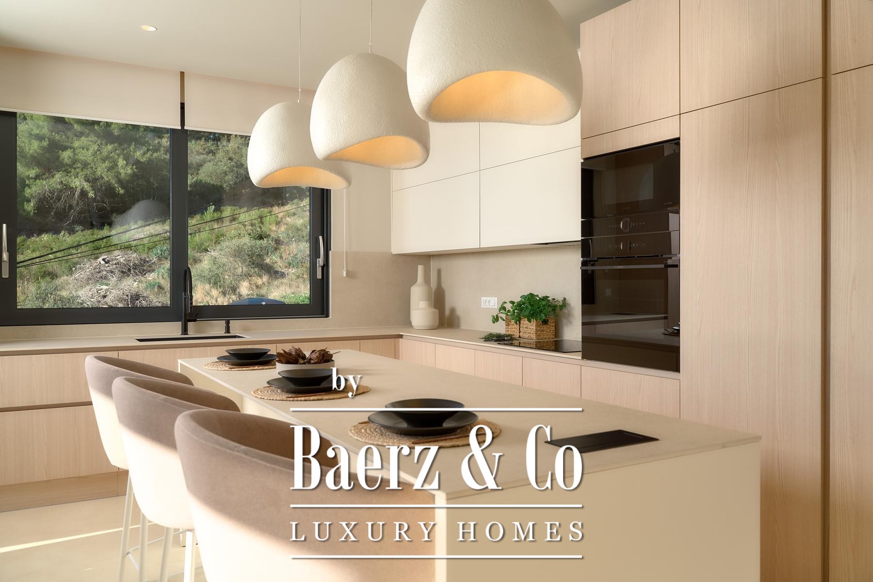 Trois chambres avec salles de bains privatives au rez-de-chaussée profitent d’un accès direct à une loggia de 18,8 m². Le garage privé de 31 m² est équipé d’une borne de recharge pour véhicule électrique. Au premier étage, un espace de vie volumineux de 52 m² s’accompagne d’une quatrième chambre, d’une salle de bains supplémentaire, et de larges terrasses, toutes orientées vers l’horizon scintillant.
