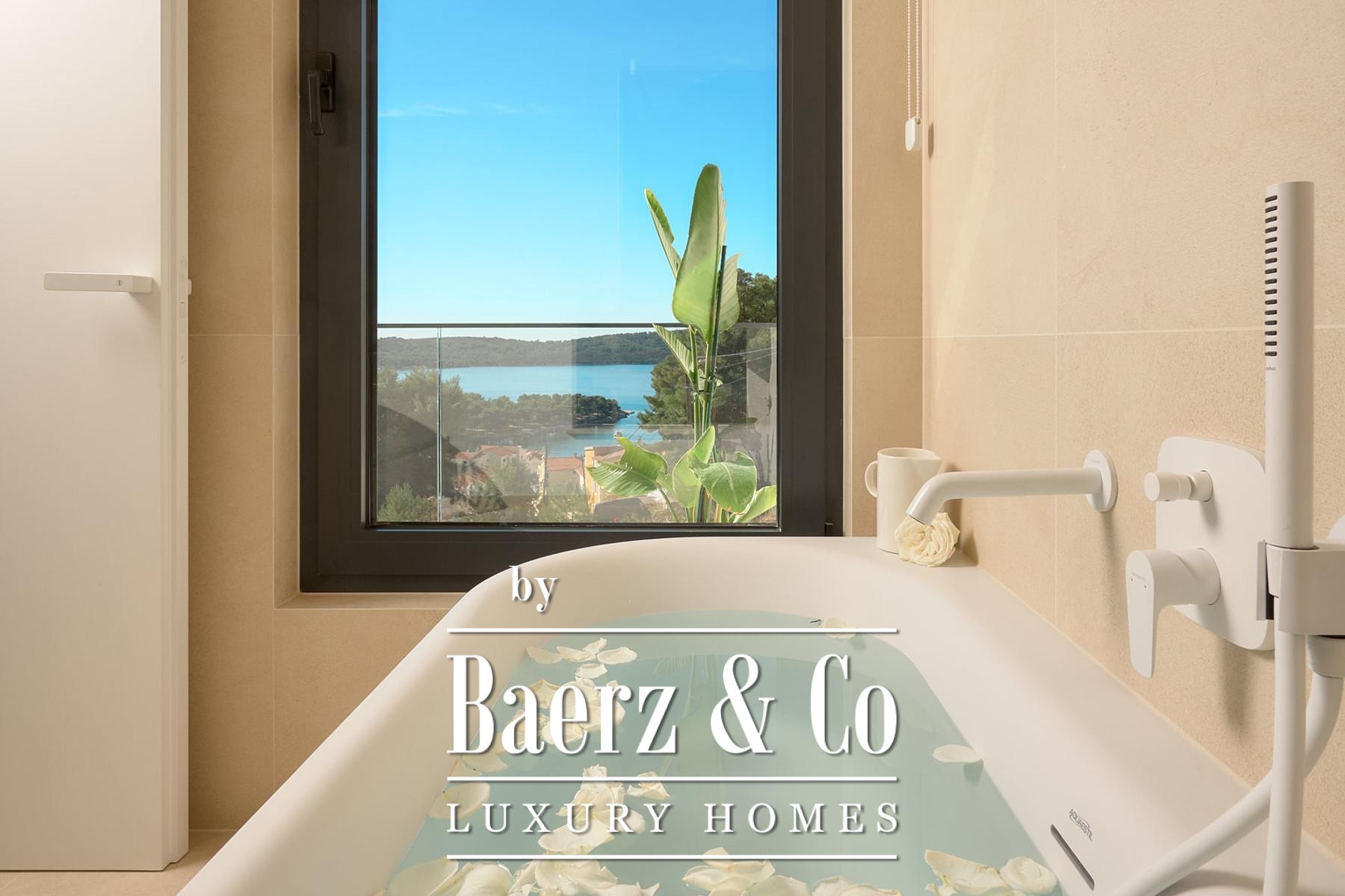 Située à quelques pas de la mer, à seulement 330 mètres de la plage, 500 mètres des commerces, ainsi qu’à proximité de Trogir, de l’aéroport de Split et de la ville de Split, cette villa moderne à vendre à Trogir incarne le luxe discret pour qui recherche une résidence familiale raffinée ou un investissement d’exception.