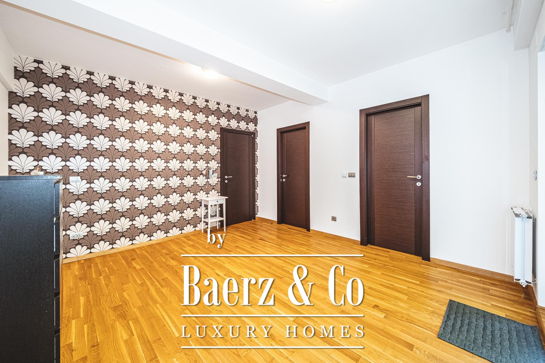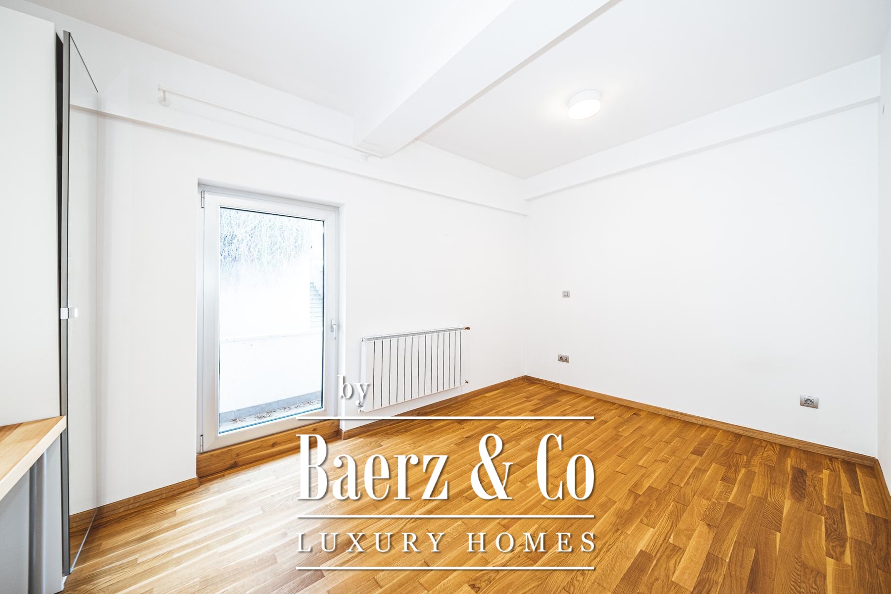 De master bedroom beschikt over een inloopkast en een en suite badkamer, terwijl de twee overige slaapkamers flexibiliteit bieden voor gezin of gasten. Elk detail, van het gebouw met lift tot twee privé garages van elk 9,90 m² en een aparte berging, is ontworpen voor optimaal gemak en gemoedsrust. Appartement Črnomerec ligt aan een groene, rustige straat en bevindt zich toch op slechts een steenworp afstand van het stadsleven, met openbaar vervoer op 50 meter en Ilica of het stadscentrum op loopafstand. Deze woning is een voorbeeld van ingetogen stedelijk wonen, waar privacy en nabijheid prachtig in balans zijn in een van de meest gewilde buurten van Zagreb.