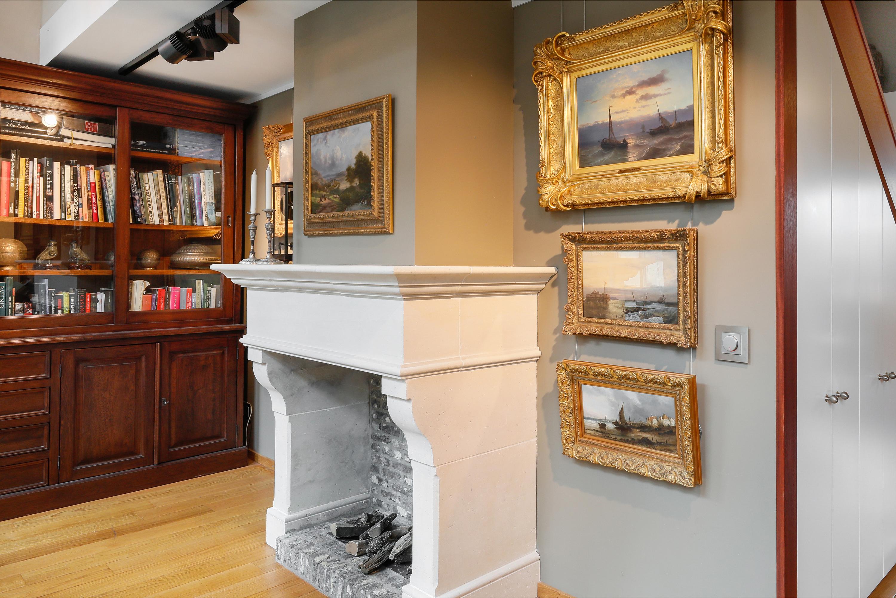 Aan de straatzijde vindt u de bibliotheek. Ook hier weer een prachtig hoog plafond. Op een wat bewolkte dag is het hier licht, maar als de zon gaat schijnen weet u niet wat u mee-maakt, maar kan overvloedig licht getemperd worden met houten Jasno jaloezieën. Er is een mooie klassieke schouw met bio-ethanol haard, aangesloten op centrale afzuiging via een regelklep. Met wat aanpassingen is van deze bibliotheekruimte ook een geweldige slaapkamer te maken. Gelijkvloers met de leefruimte. Maar de woning biedt voor iedere leeftijd en mobiliteit, voldoende mogelijk-heden om er lang te kunnen blijven wonen.