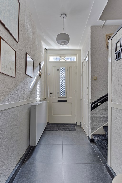 U betreedt de woning aan de straatkant. Aan de zijkant van de woning bevindt zich tevens de eigen oprit met carport. Ideaal om een auto of fietsen te parkeren. Eenmaal binnen arriveert u in de riante hal, welke toegang biedt tot de toiletruimte, trap naar de 1e verdieping, kelder en doorgang biedt naar de keuken en woonkamer.