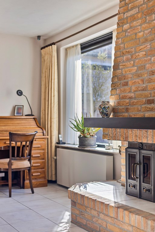 Via de keuken en een kleine hal betreedt u de tweede woonkamer aan de achterzijde van de woning. Deze sfeervolle ruimte grenst direct aan de fraaie tuin en wordt dankzij de grote raampartijen rijkelijk voorzien van natuurlijk daglicht. Dankzij de veelzijdige indeling is de ruimte multi-inzetbaar, bijvoorbeeld als extra woonkamer, werkkamer of speelkamer. De aanwezige open haard zorgt bovendien voor extra sfeer en warmte.