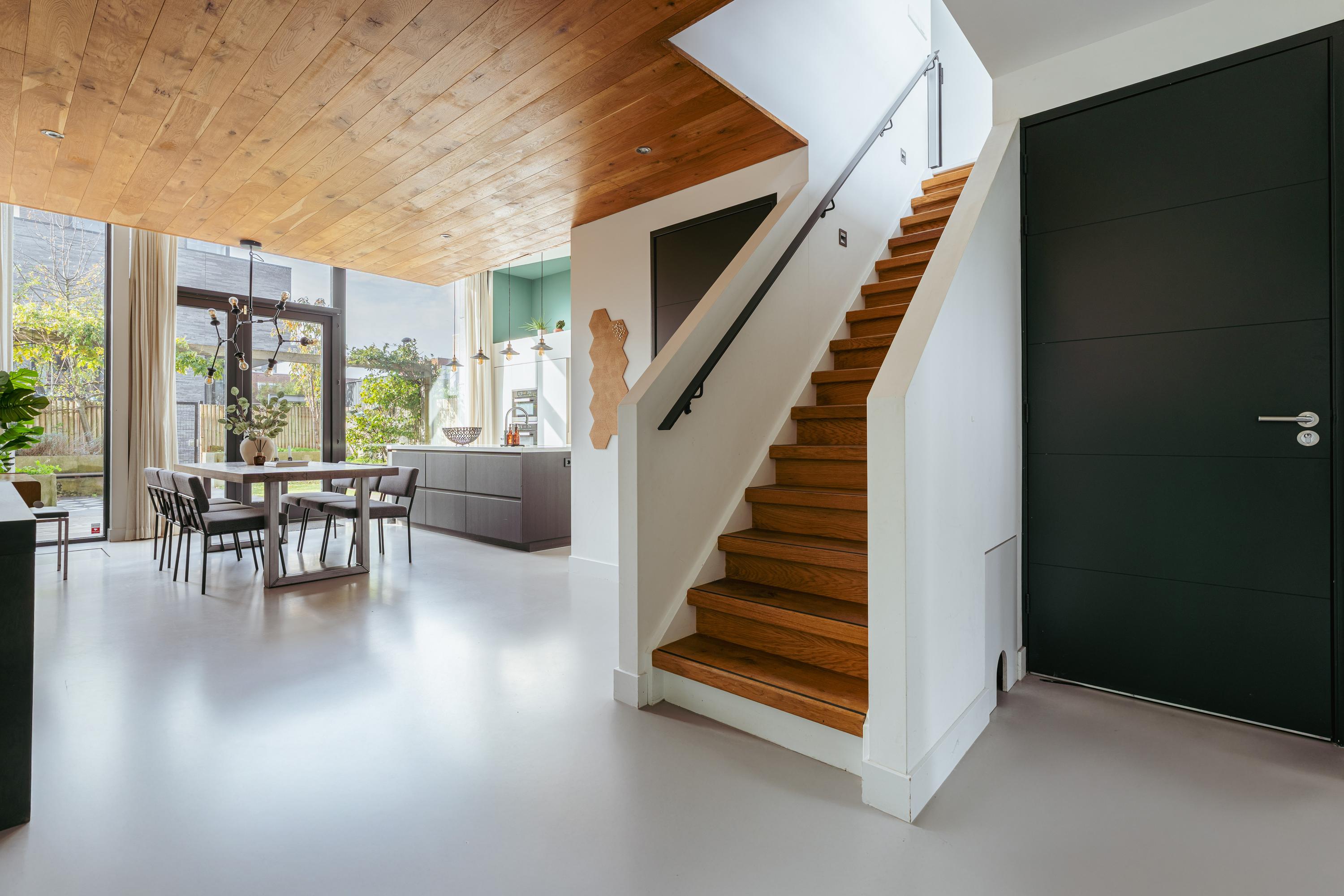 Met vier woonlagen, vijf slaapkamers, twee badkamers, een sauna, een bioscoopkamer en diverse multifunctionele ruimtes is dit een ideaal familiehuis waar comfort en design samenkomen. De zonnige tuin op het zuiden, twee privéparkeerplaatsen met laadpaal en 17 zonnepanelen maken het geheel compleet.
