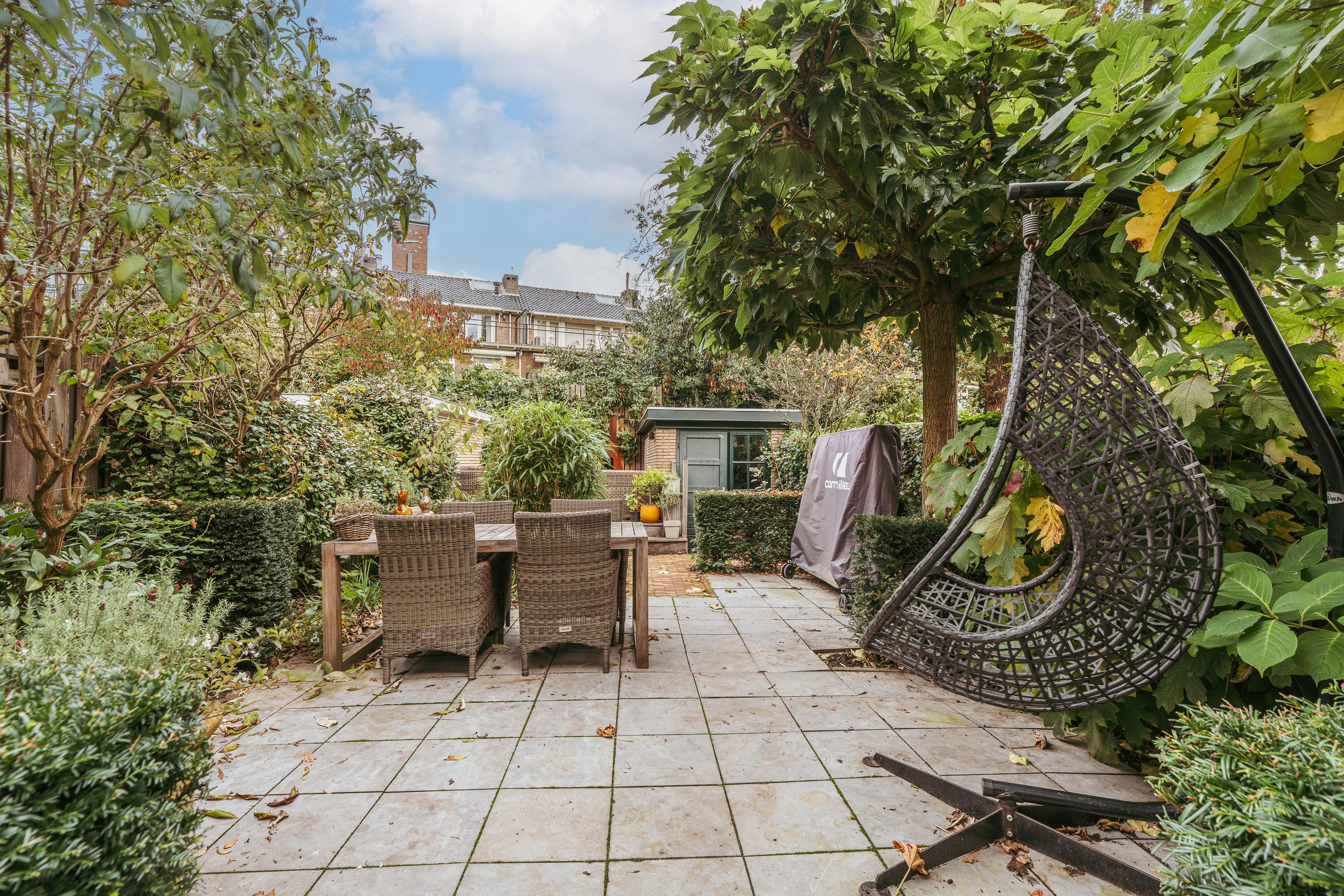 Entree met tochtportaal, gevolgd door een ruime hal met garderobe, trapopgang en separaat toilet met fontein. Aan de voorzijde bevindt zich de sfeervolle woonkamer met erker, waardoor veel natuurlijk licht naar binnen valt. Aan de achterzijde, achter schuifdeuren, ligt de royale eetkamer met aangrenzende open keuken. Deze is uitgerust met een vijfpits gasfornuis, afzuigkap, oven, magnetron, ijskast, vriezer, vaatwasser, ruime opbergmogelijkheden en een gezellige bar. Middels openslaande deuren is er toegang tot de brede en zonnige achtertuin, die veel privacy biedt en beschikt over een vrijstaande berging, ideaal voor fietsen en tuingereedschap.