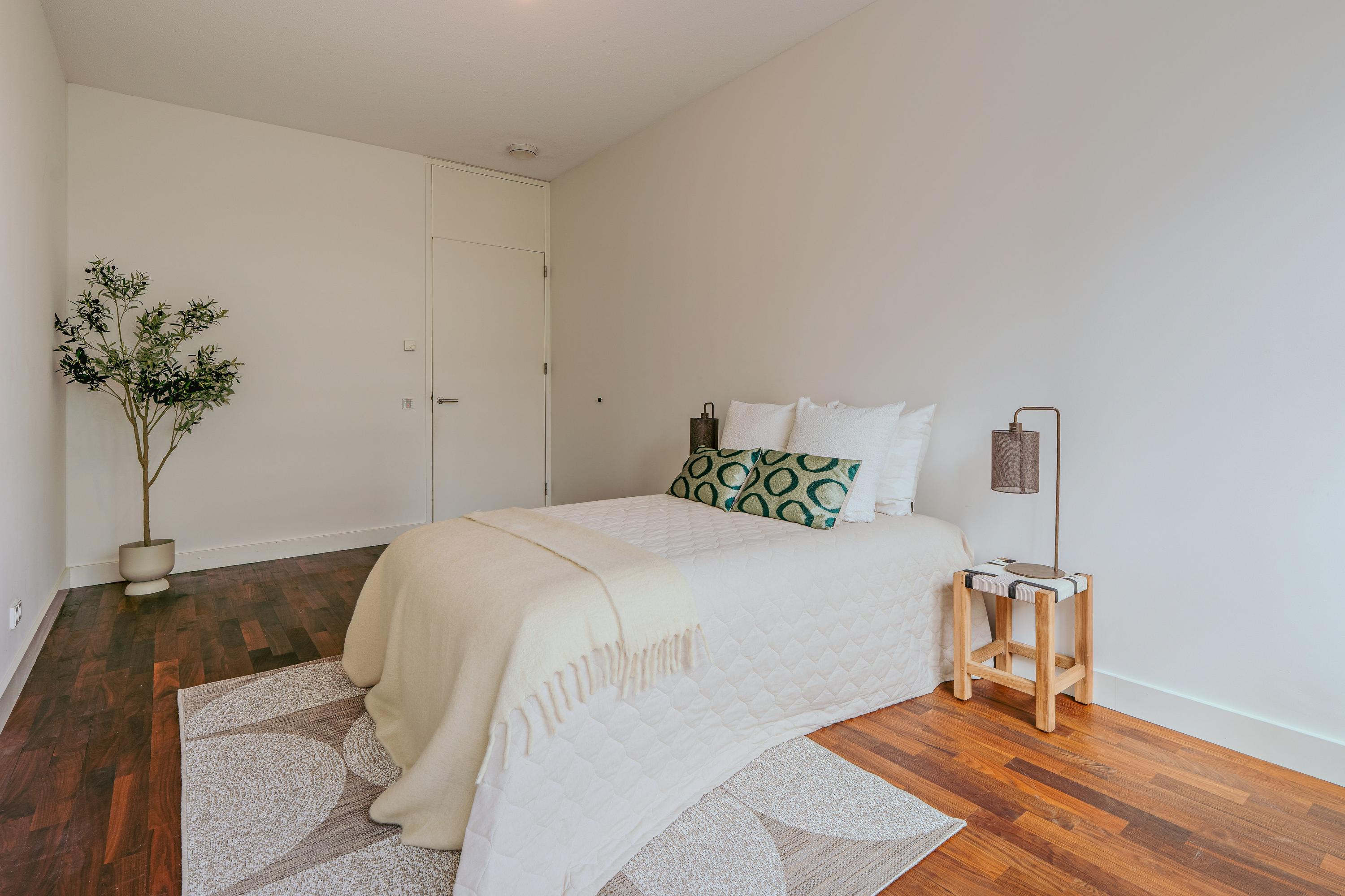 Een tweede hal verbindt de woon/leefruimte met de slaapvertrekken aan de voorzijde en badkamer aan de achterzijde. Beide slaapkamers zijn opvallend ruim en de grote ramen zorgen voor een open gevoel. De kamers brengen rust met zich mee. De hoofdslaapkamer beschikt eveneens over een serre en voelt daardoor extra ruimtelijk aan. Achterin bevindt zich een moderne badkamer, met wastafelmeubel, een ligbad, bidet en inloopdouche. U heeft vanuit de hal ook nog toegang tot een ruime berging voor extra opbergruimte.
