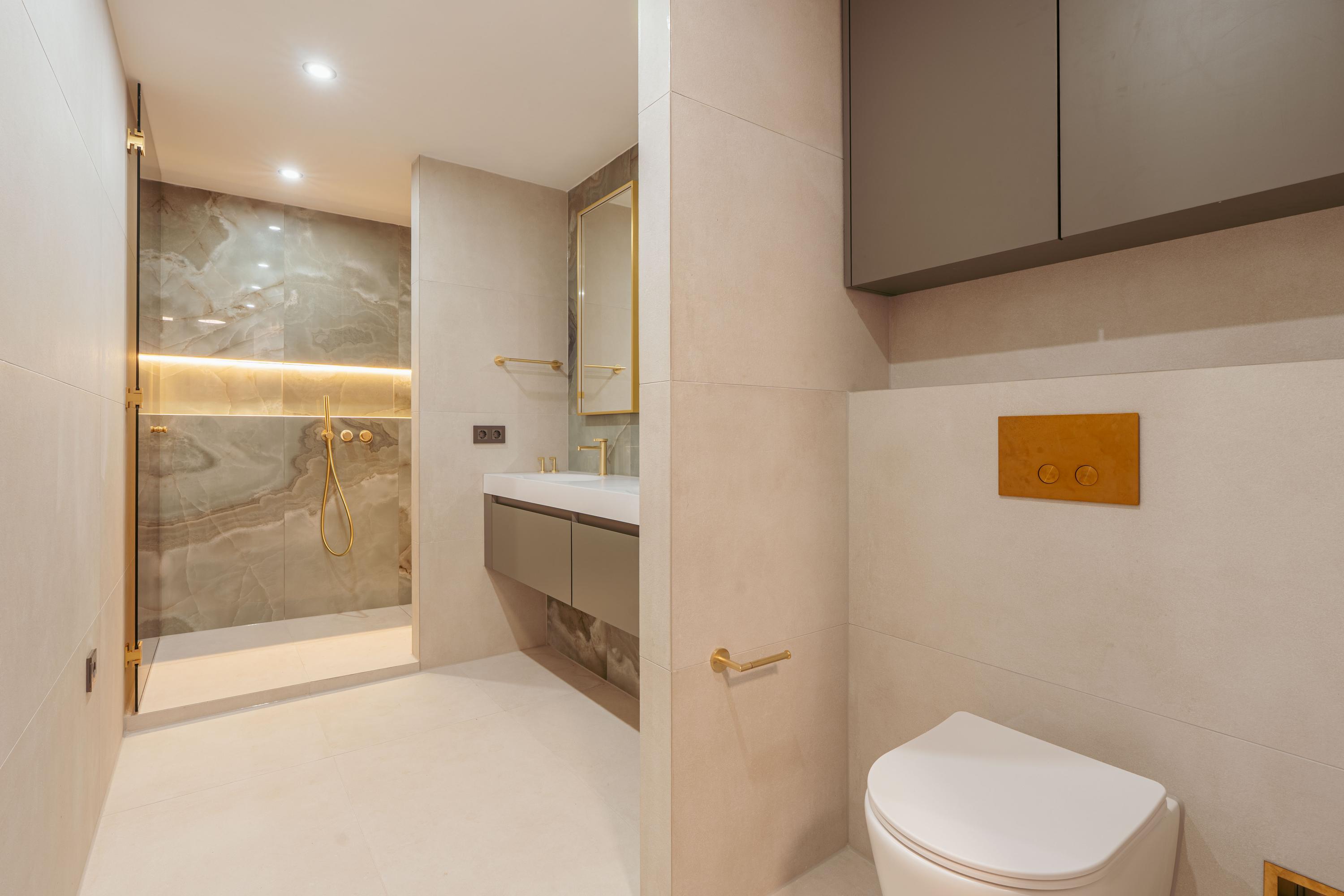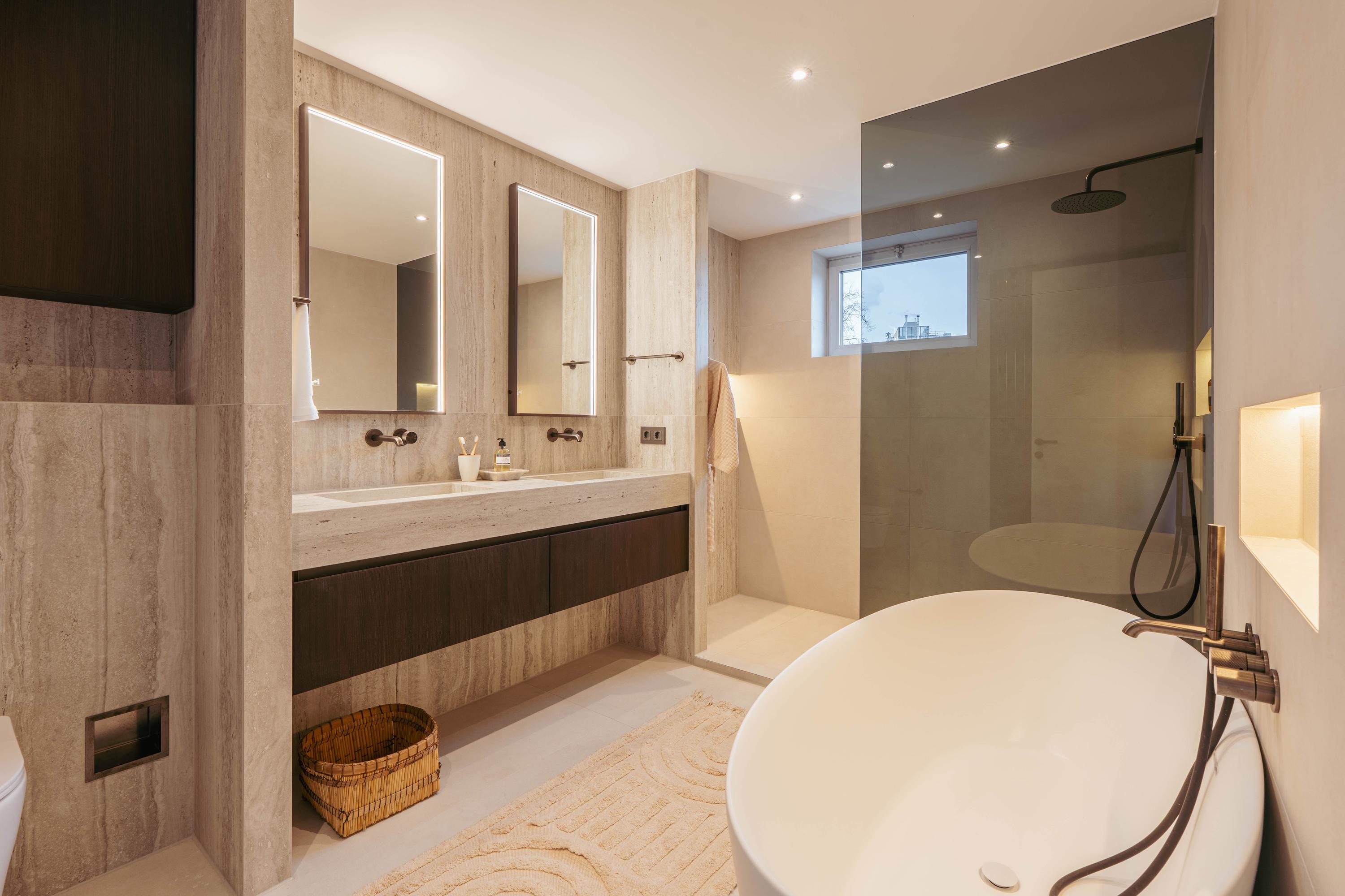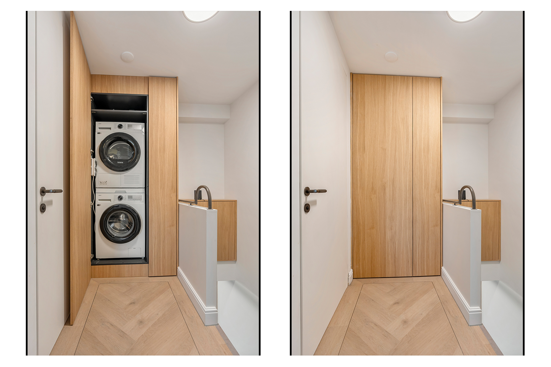 Op de tweede verdieping van dit turn-key appartement heeft u vanuit de brede overloop toegang tot nog twee goed bemeten slaapkamers, beiden voorzien van fijne verlichting en verfijnde raampartijen. De badkamer op deze verdieping is voorzien van een inloopdouche, een dubbele wastafel met meubel en een toilet. Bovendien vindt u nog een handige inbouwkast vanuit de overloop, waar u tevens aansluitingen voor wasmachine en droger vindt.