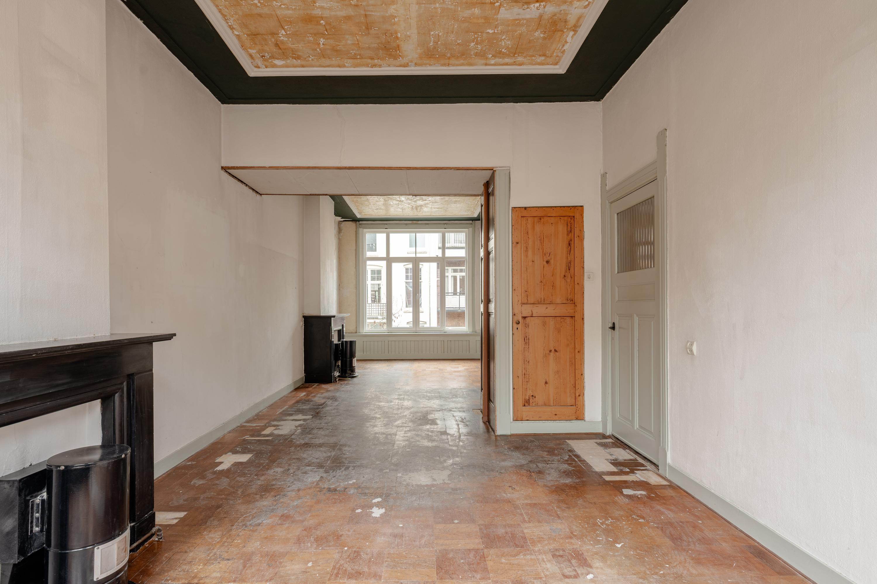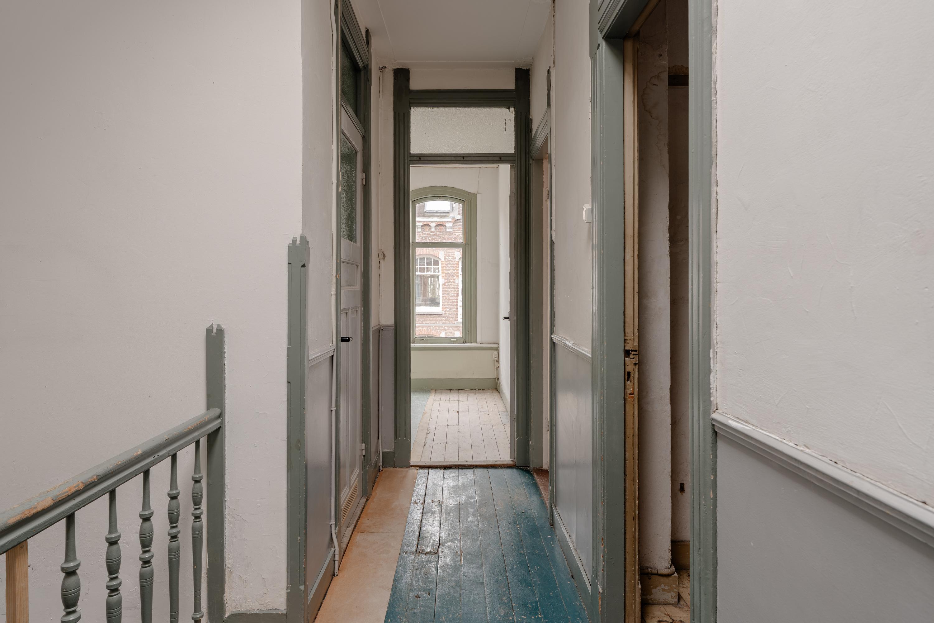 Op de tweede verdieping bevindt zich de centrale overloop die toegang biedt tot de verschillende vertrekken. De royale woonkamer is opvallend ruim en licht, met grote raampartijen en een fijne plafondhoogte, waardoor deze ruimte zich uitstekend leent voor een moderne leefruimte met een gezellige zithoek en eetgedeelte. Vanuit de woonkamer is tevens het balkon bereikbaar. Aan de achterzijde ligt de keuken, die desgewenst gemoderniseerd kan worden of betrokken kan worden bij de woonruimte voor een meer open indeling. Daarnaast is er op deze verdieping een separaat toilet en een slaapkamer aanwezig, ideaal als werk-, logeer- of kinderkamer.