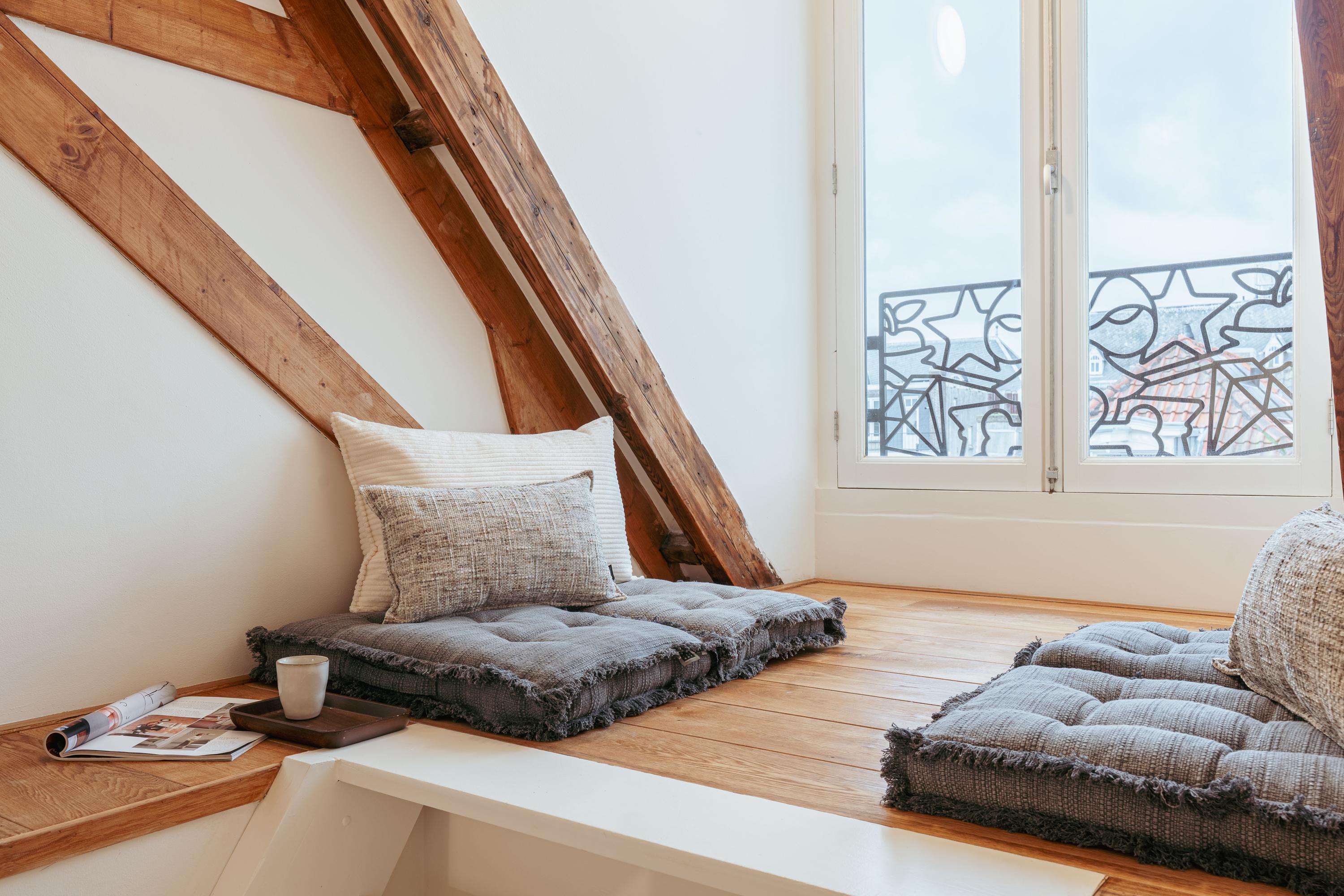 Dit royale appartement strekt zich uit over drie verdiepingen. De entree tot de woning bevindt zich op de tweede verdieping, waar een trap leidt naar de derde verdieping waar de woonruimte begint.