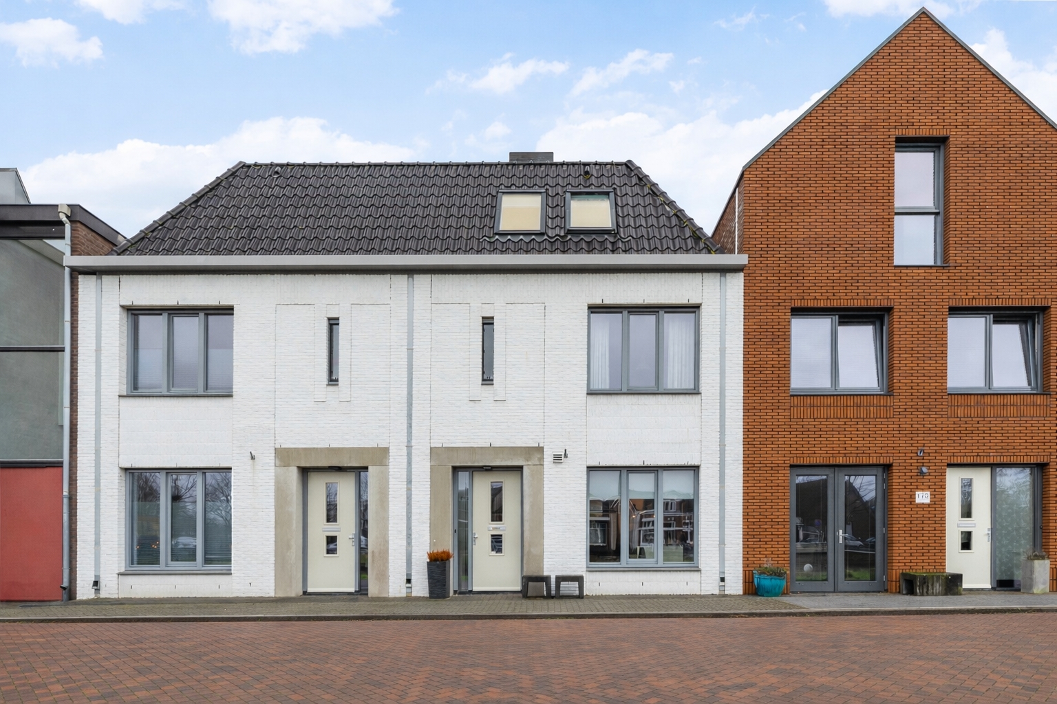 De woning is uitgevoerd in een bijzondere twee-onder-een-kap stijl, waarbij meerdere woningen in een rij zijn gerealiseerd. Deze architectonische opzet combineert het gevoel van een twee-onder-een-kapwoning met de efficiëntie en samenhang van rijbebouwing. Het resultaat is een rustig en evenwichtig straatbeeld met een herkenbare, eigentijdse uitstraling. Door deze bouwvorm profiteert de woning van een duidelijke eigen identiteit, een prettige breedtemaat en een logische indeling, terwijl de aansluiting met de naastgelegen woningen zorgvuldig is vormgegeven.