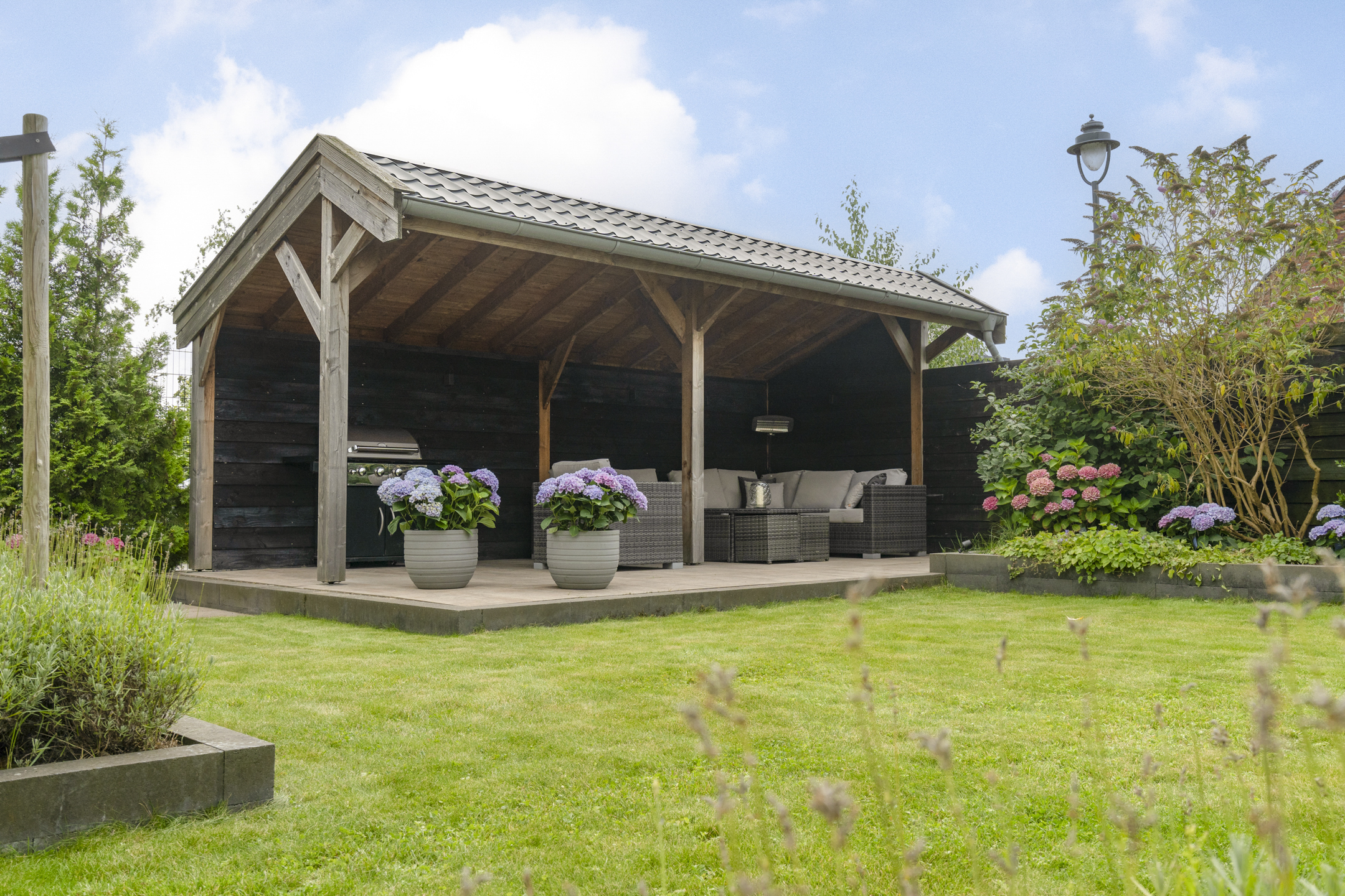 • Royale tuin met overkapping van 22 m² en heater;