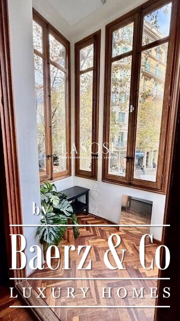 Appartement Barcelona in Eixample Esquerra bevindt zich op de bel-etage van een karakteristiek modernistisch pand uit 1900, waar erfgoedarchitectuur en een royale ruimtelijke indeling samenkomen. Deze woning biedt een intern woonoppervlak van 179 m² en 4 m² aan balkons. Drie balkons aan de straatzijde en een klassieke erker vullen de hoofdwoonkamer met daglicht, wat zowel grandeur als openheid weerspiegelt. De plafonds reiken tot 3,5 meter en zijn voorzien van de originele volta catalana, waarmee het authentieke karakter van de bouwperiode behouden blijft.