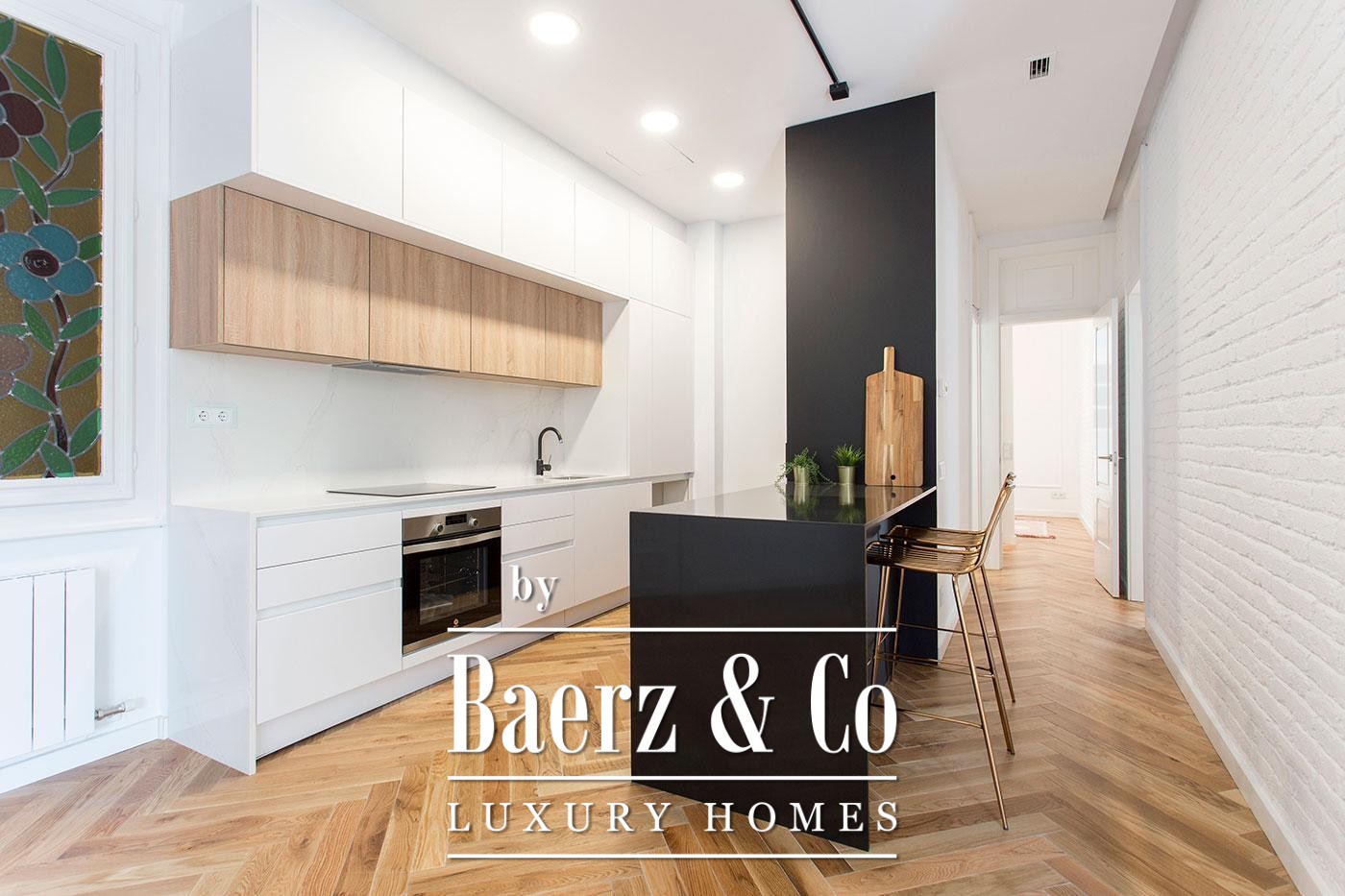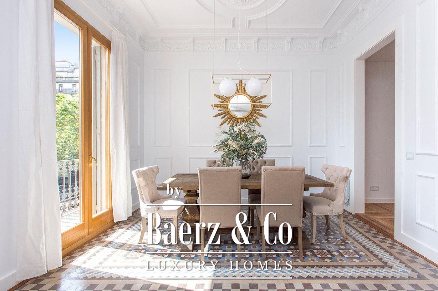 Apartment Barcelona ligt in het hart van Eixample en biedt een setting waarin elk detail verfijnd stedelijk wonen ondersteunt. Dit hoogwaardig gerenoveerde appartement beslaat de werkelijke vijfde verdieping van een statig gebouw met lift, op steenworp afstand van Plaça Catalunya en Passeig de Gràcia. Natuurlijk licht vult het circa 121 m² grote interieur en benadrukt een open leefruimte waar de lounge, eethoek en volledig uitgeruste keuken samenkomen. Balkons bieden weids uitzicht over de stad; de ligging en de diverse raampartijen versterken de verbondenheid met het kenmerkende ritme van Barcelona.