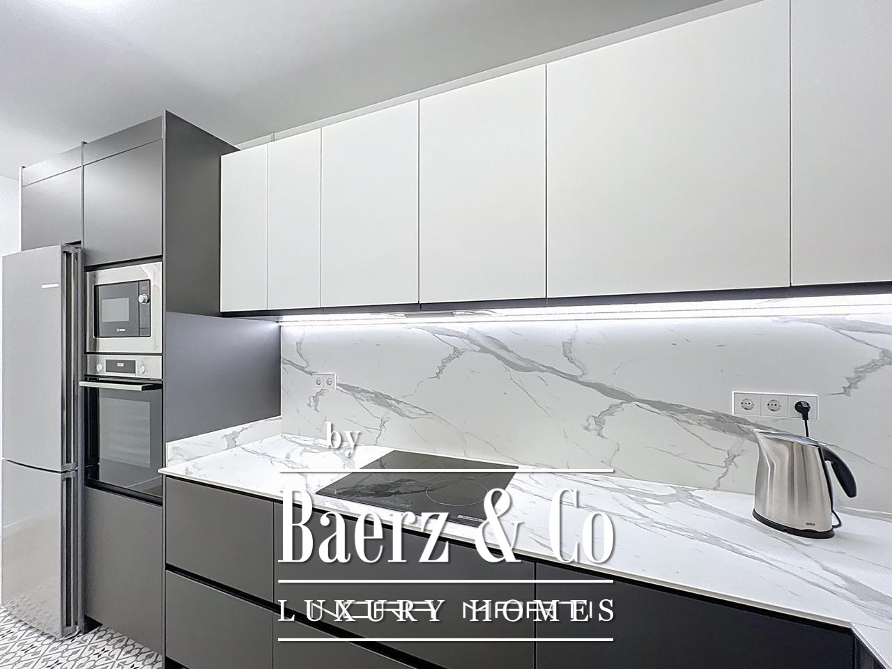 Het appartement is ingericht met oog voor comfort en functionaliteit en beschikt over vier tweepersoonsslaapkamers, waarvan twee met en-suite badkamer, plus een derde complete badkamer. Elke slaapkamer is voorzien van ingebouwde kasten, waarmee opbergruimte en stijl worden gecombineerd. De ruime woon- en eetkamer baadt in daglicht en grenst direct aan een balkon, zodat het buitenleven uitnodigend wordt geïntegreerd. De aparte keuken is volledig uitgerust met Bosch-apparatuur en grenst aan een praktische wasruimte, voor optimaal gemak en privacy.