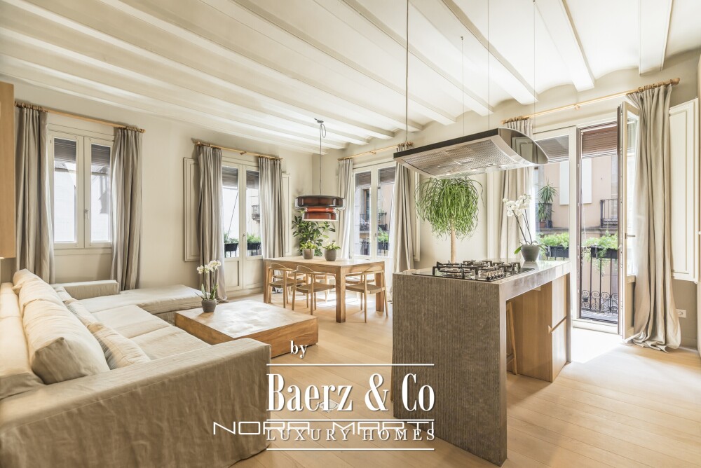 Gemeubileerd en centraal in Barcelona gelegen, biedt deze woning serene luxe, met een perfecte balans tussen historisch karakter en hedendaagse helderheid.