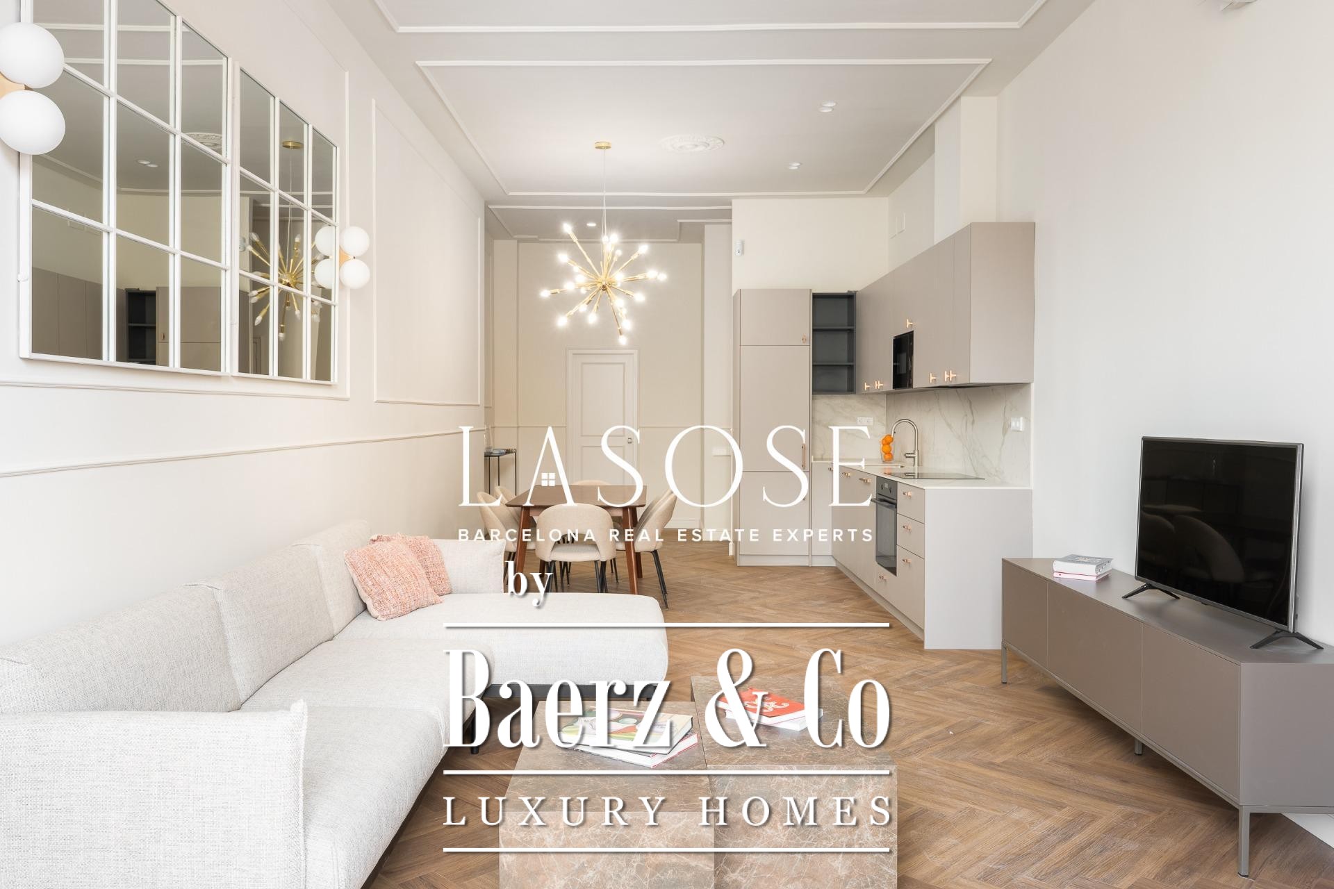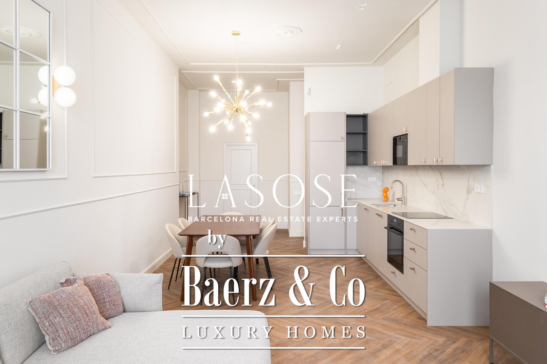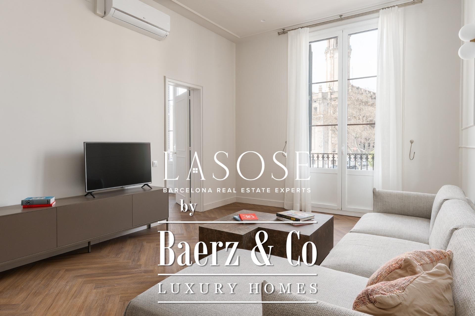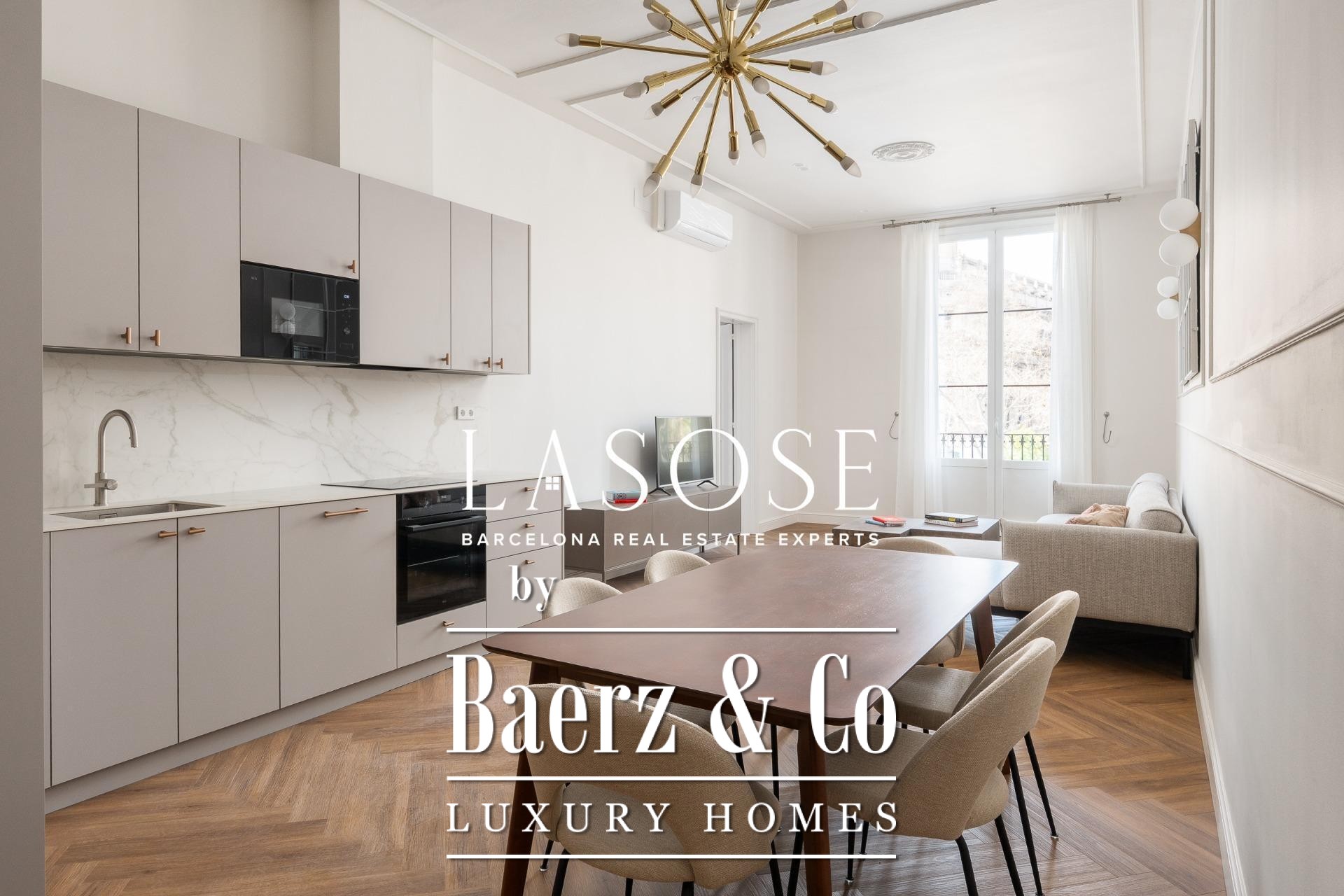 Appartement Barcelona bereikt een nieuwe betekenis in deze uitzonderlijke residentie van 118 m², gelegen in een nauwgezet gerenoveerd historisch pand uit 1850 dat nu als Lokaal Erfgoed is aangemerkt. De woning vormt een zeldzame balans tussen het behouden architecturale karakter en de eisen van hedendaagse luxe. Zodra u binnenkomt, ervaart u direct een gevoel van ruimte en verfijning, dankzij de open woon- en eetkamer die baadt in natuurlijk licht via royale ramen aan de zijde van de Paseo Isabel II. Designmeubilair en hoogwaardige afwerkingen verrijken iedere beleving.