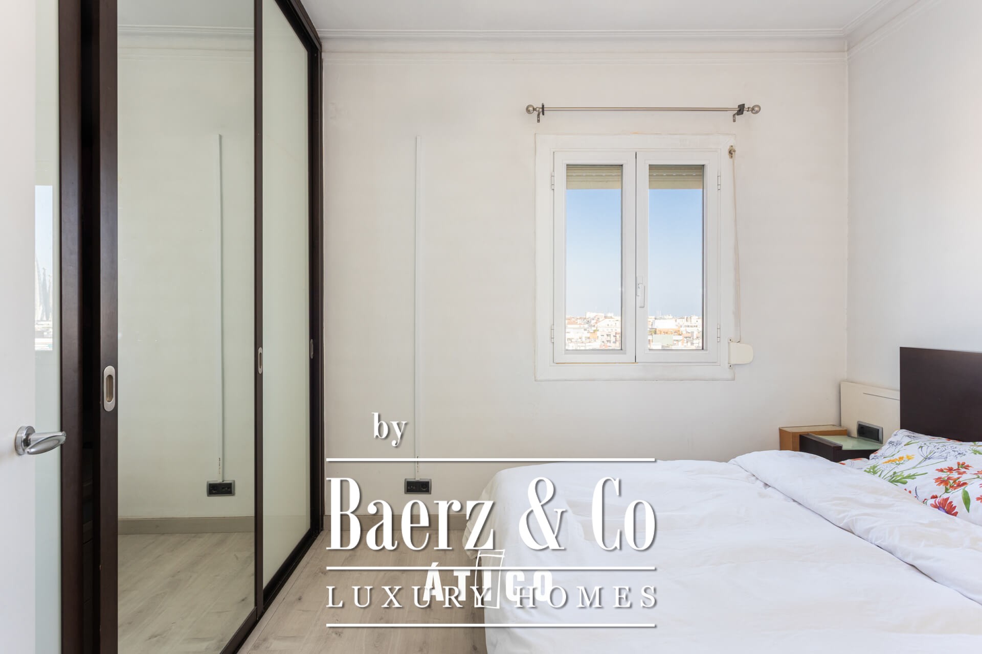 Penthouse appartement Barcelona biedt een verfijnd stedelijk toevluchtsoord, gelegen op slechts enkele stappen van Passeig de Sant Joan in een van de meest gewilde adressen van de stad. Deze centraal gelegen woning van 65 m² beschikt over twee slaapkamers en een terras van 10 m², waarmee u geniet van een privé-uitzicht over de stad, inclusief een bevoorrecht zicht op Tibidabo, de zee en de Sagrada Familia.