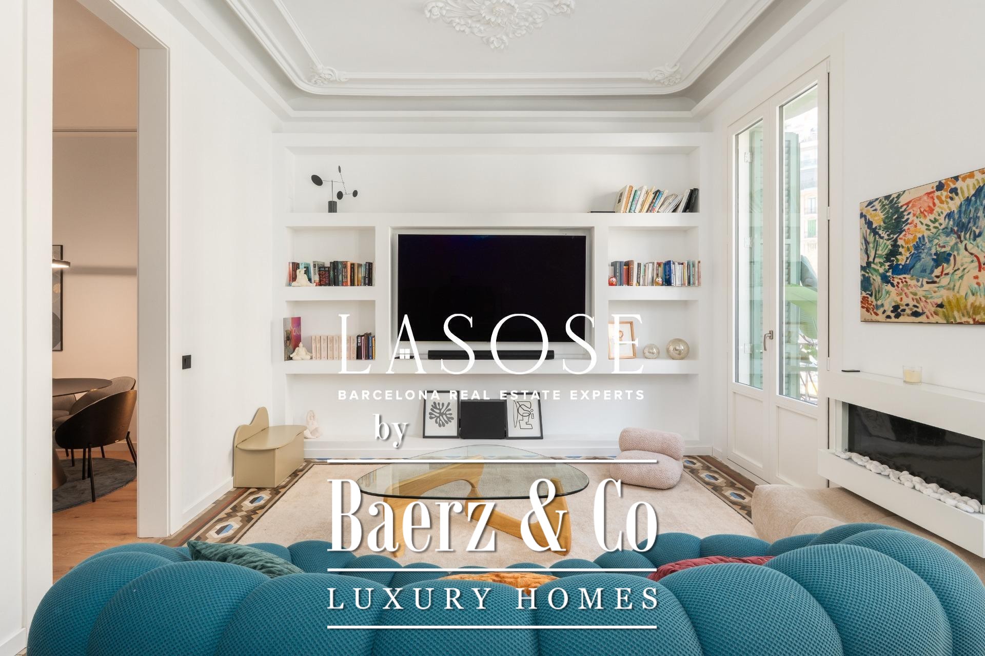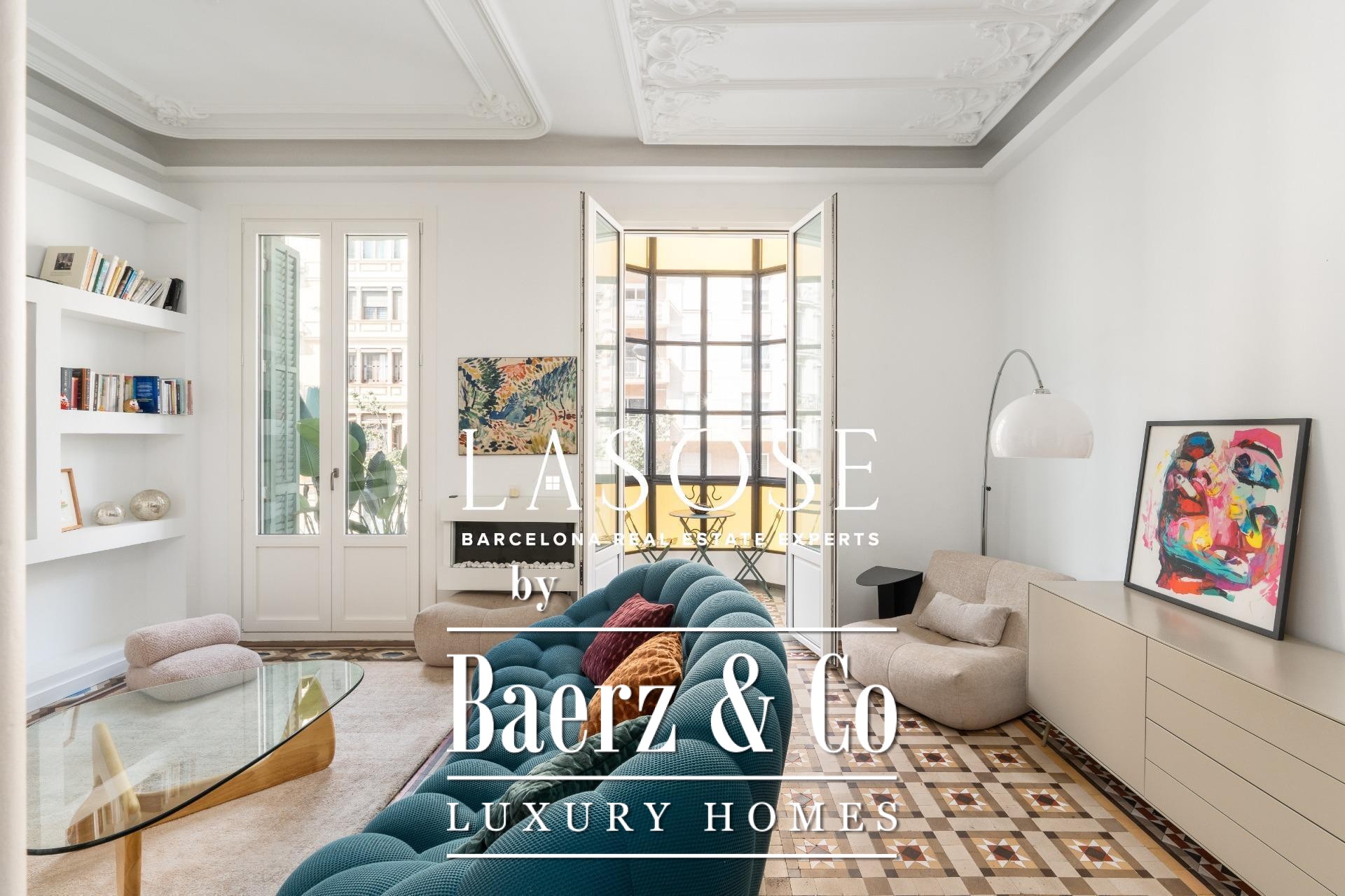Appartement Barcelona Eixample bevindt zich op een rustige locatie op de Principal-verdieping van een beschermd modernistisch gebouw nabij de Passeig de Sant Joan. De meest recente renovatie, voltooid slechts twee jaar geleden, combineert hedendaagse luxe met de oorspronkelijke charme. Kenmerkend zijn de hydraulische Nolla-mozaïekvloeren, hoge plafonds voorzien van decoratieve sierlijsten en geraffineerde architectonische details door het hele pand.